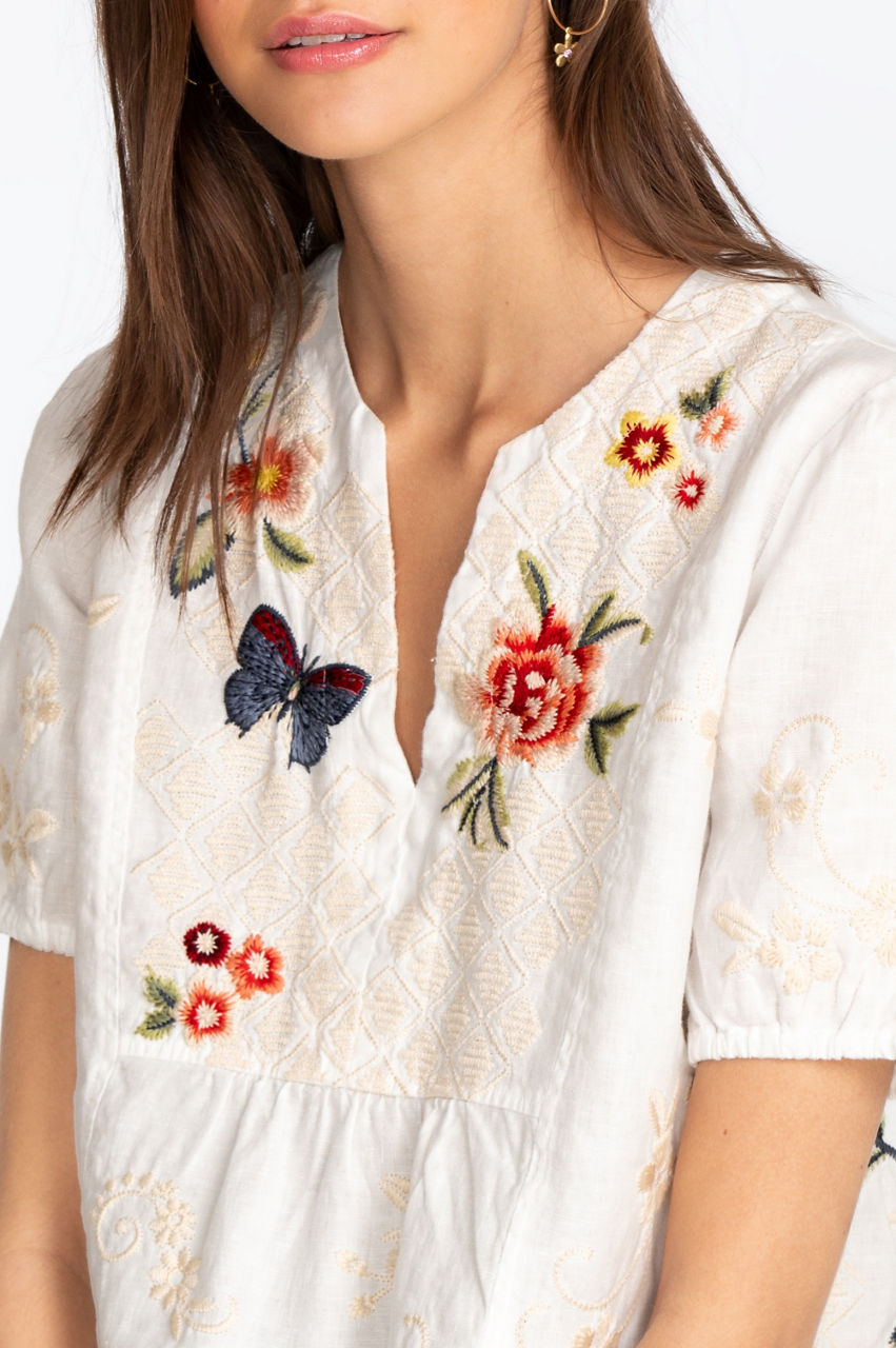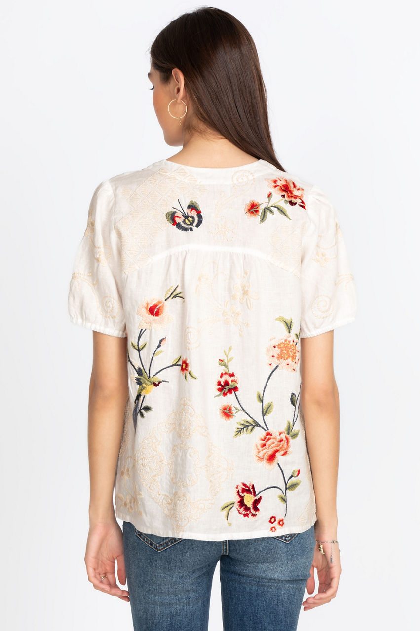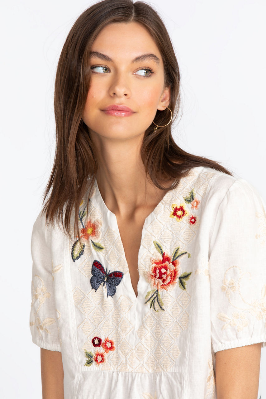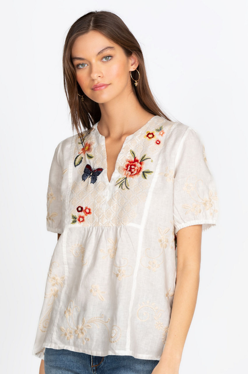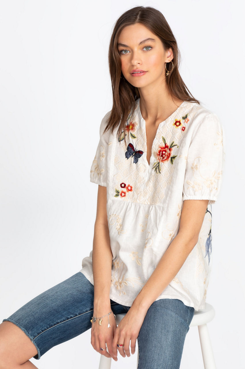 Its flowy silhouette, unique embroidery and perfect color story will make our Jailyn Puff Sleeve Weekend Top your favorite casual piece this season. It s ideal for exploring the town with your friends or taking a day trip to your favorite art gallery. Wear it with your favorite leggings and boho flats to relax in laid-back Bohemian style.