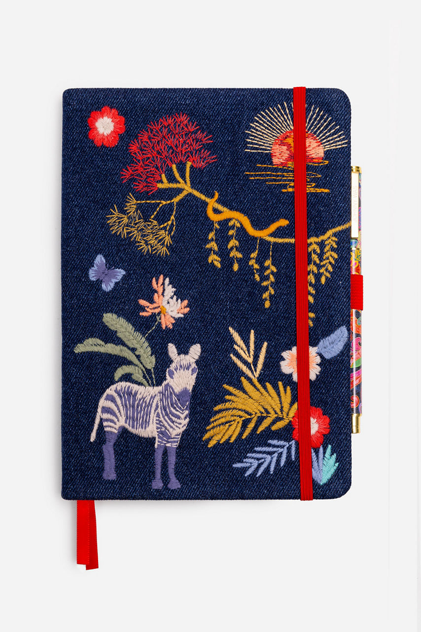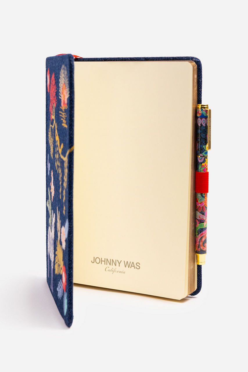 The Jane Journal is a stylish way to gather your thoughts in one place. Featuring a playful floral silk blend cover, this journal contains lined pages and is accompanied by an exquisite coordinating pen to capture your daily reflections. Place on your desktop or add to your everyday tote for easy access.