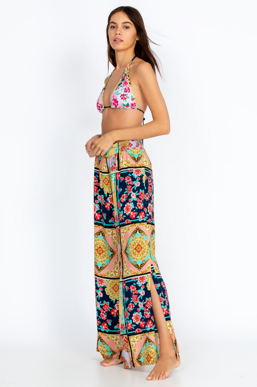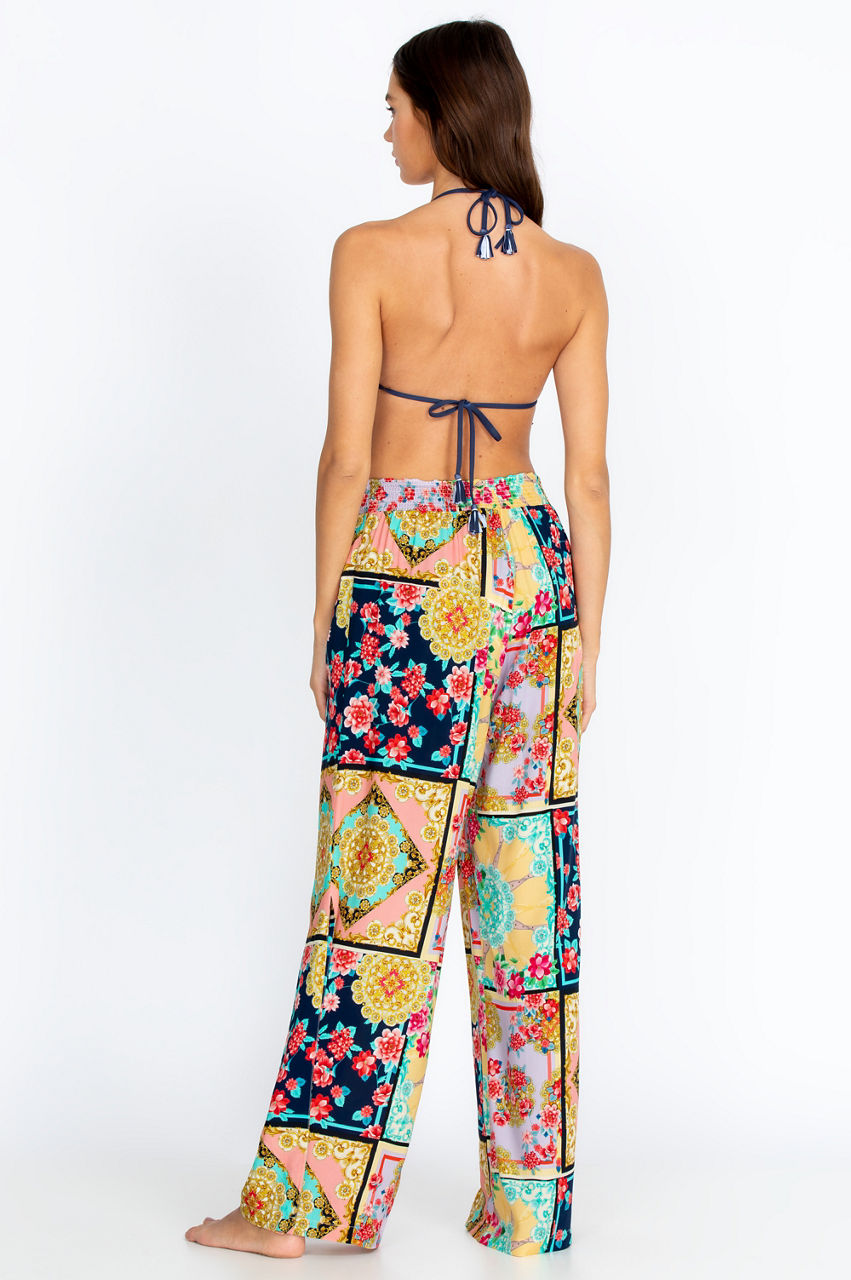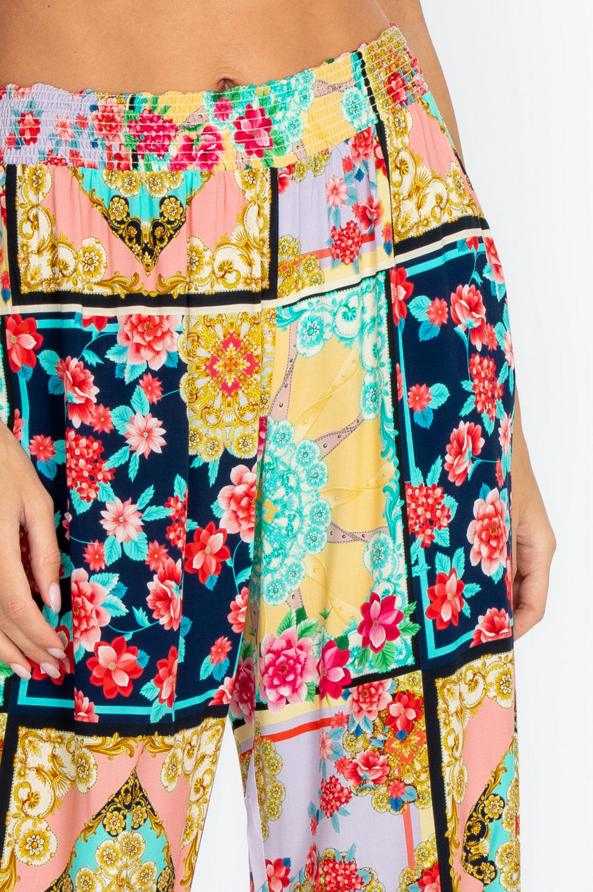 Make a singular style statement for the summer season in our Japer Smocked Waist Pant that comes in breathtaking colors and an intricate, visually stunning print. In addition to the boho-inspired hues and patterns throughout, the pants with elastic waistband look great paired with a simple short-sleeved blouse and sandals for a great casual vibe.