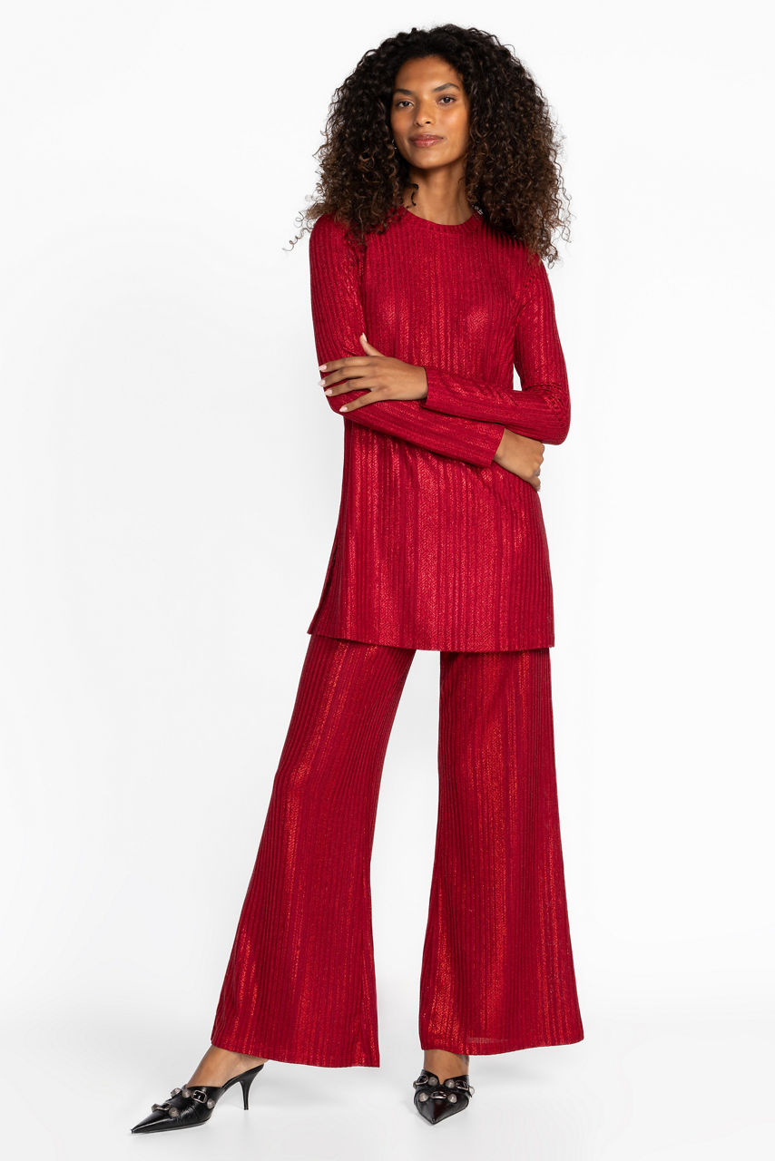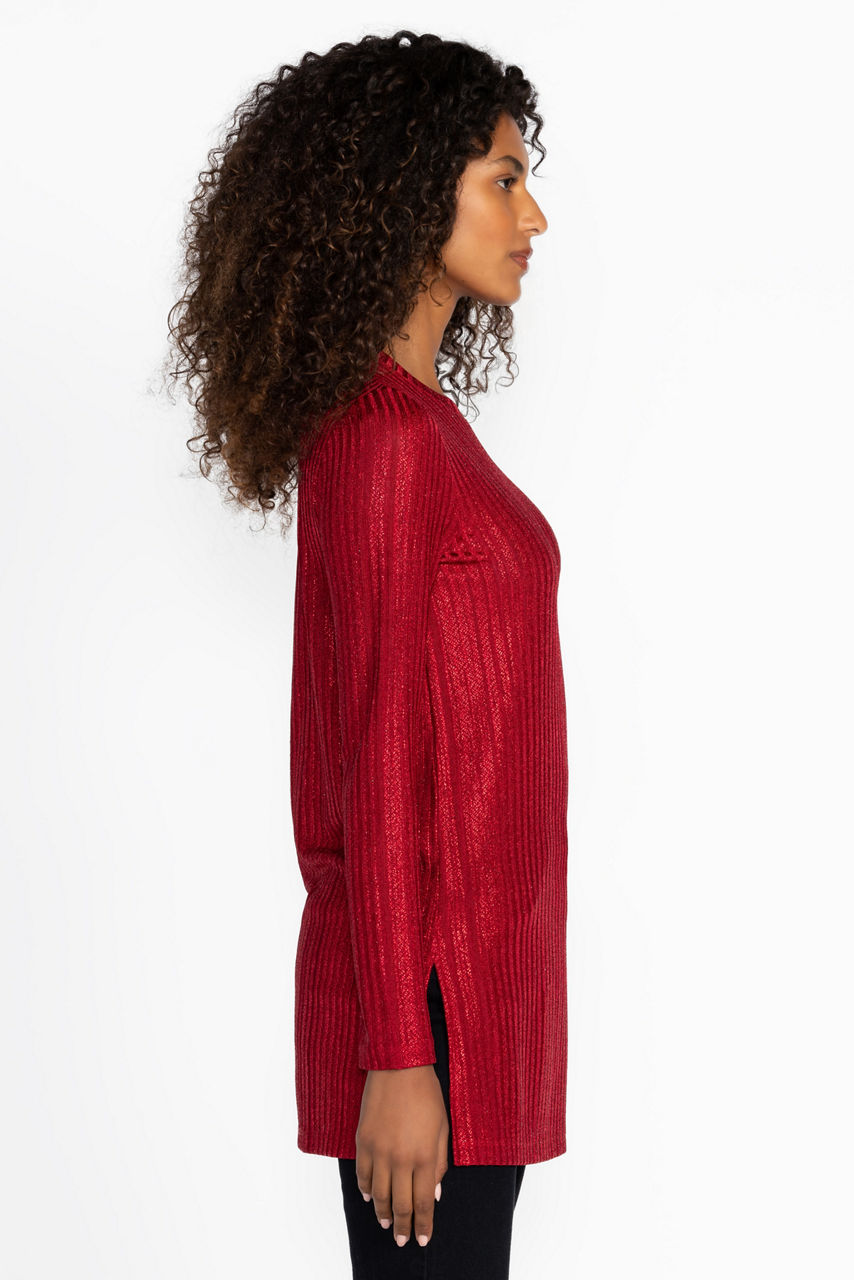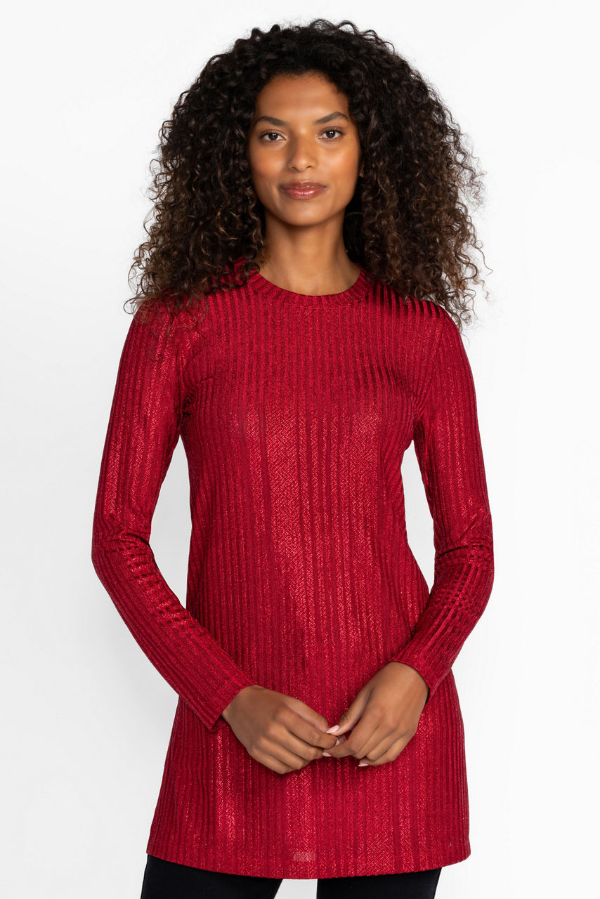 Offering refined evening wear with a hint of sparkle, the Jenna Metallic Tunic adds texture and shine to your look. Featuring a crew neckline and long sleeves, this elegantly draped, relaxed-fit tunic creates a flowing silhouette. Pair with the Jenna Metallic Easy Pants and strappy heels for a modern polished look.