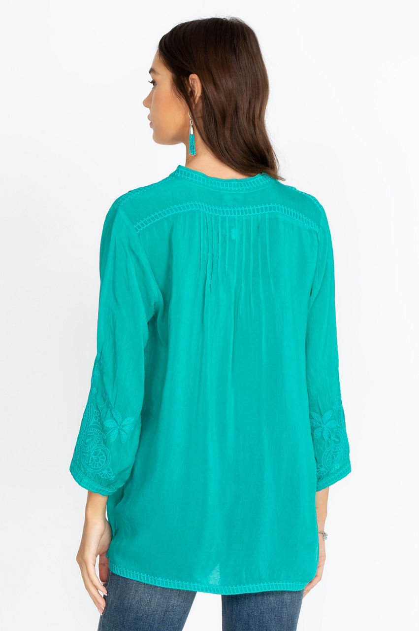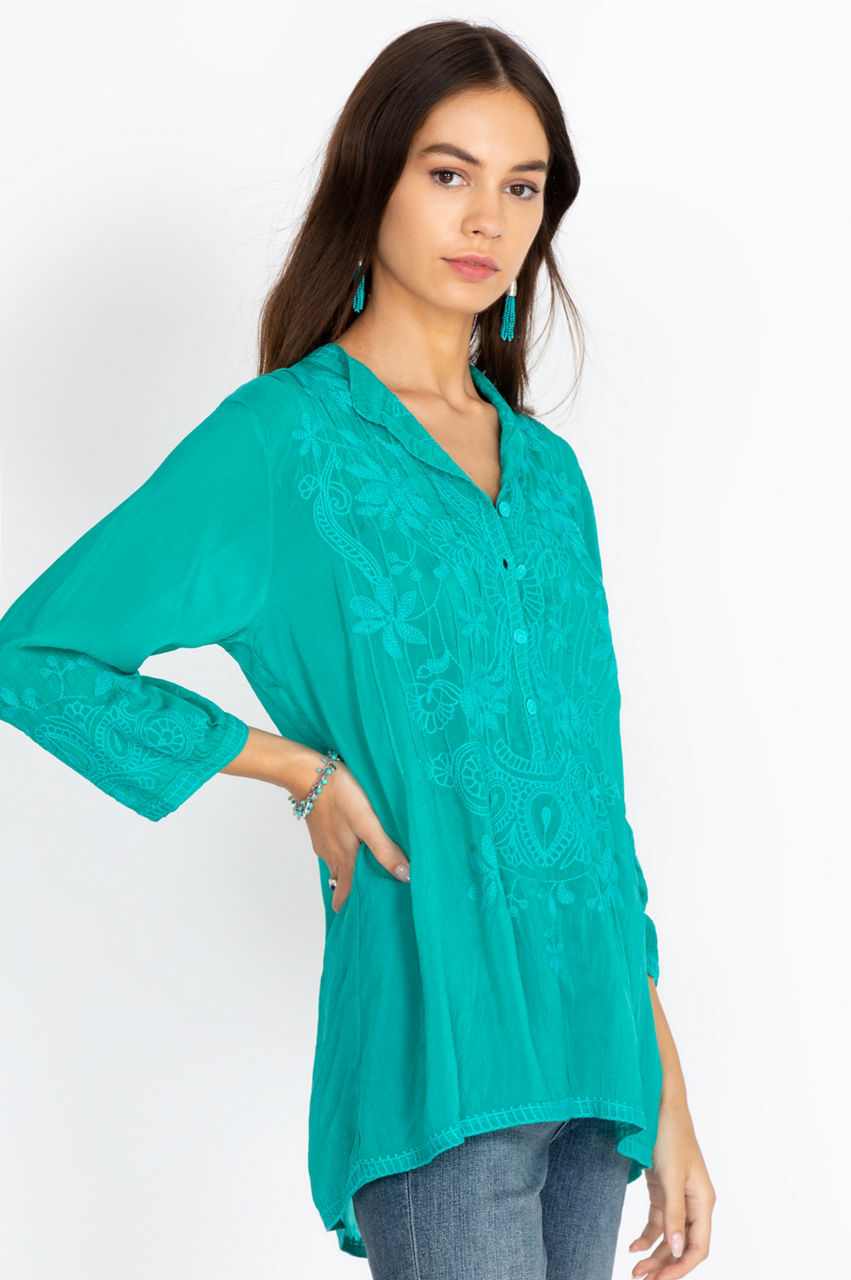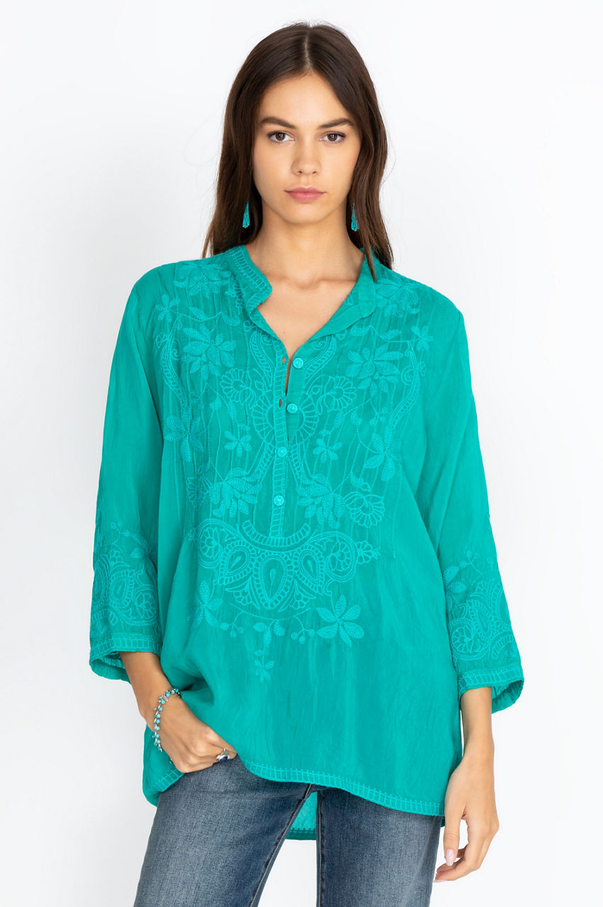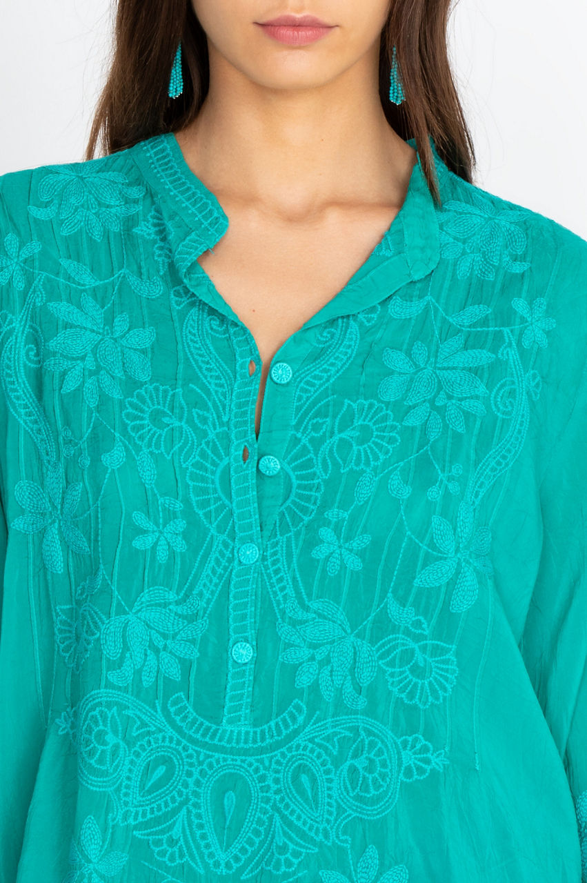 With an exquisite display of unique embroidery, our stunning Jeta Blouse is made with both style and comfort in mind. This long-sleeved blouse is light and soft, making it a perfect piece all summer long. Pair with your favorite jeans and sandals for an easy, elegant look for hitting the mall.