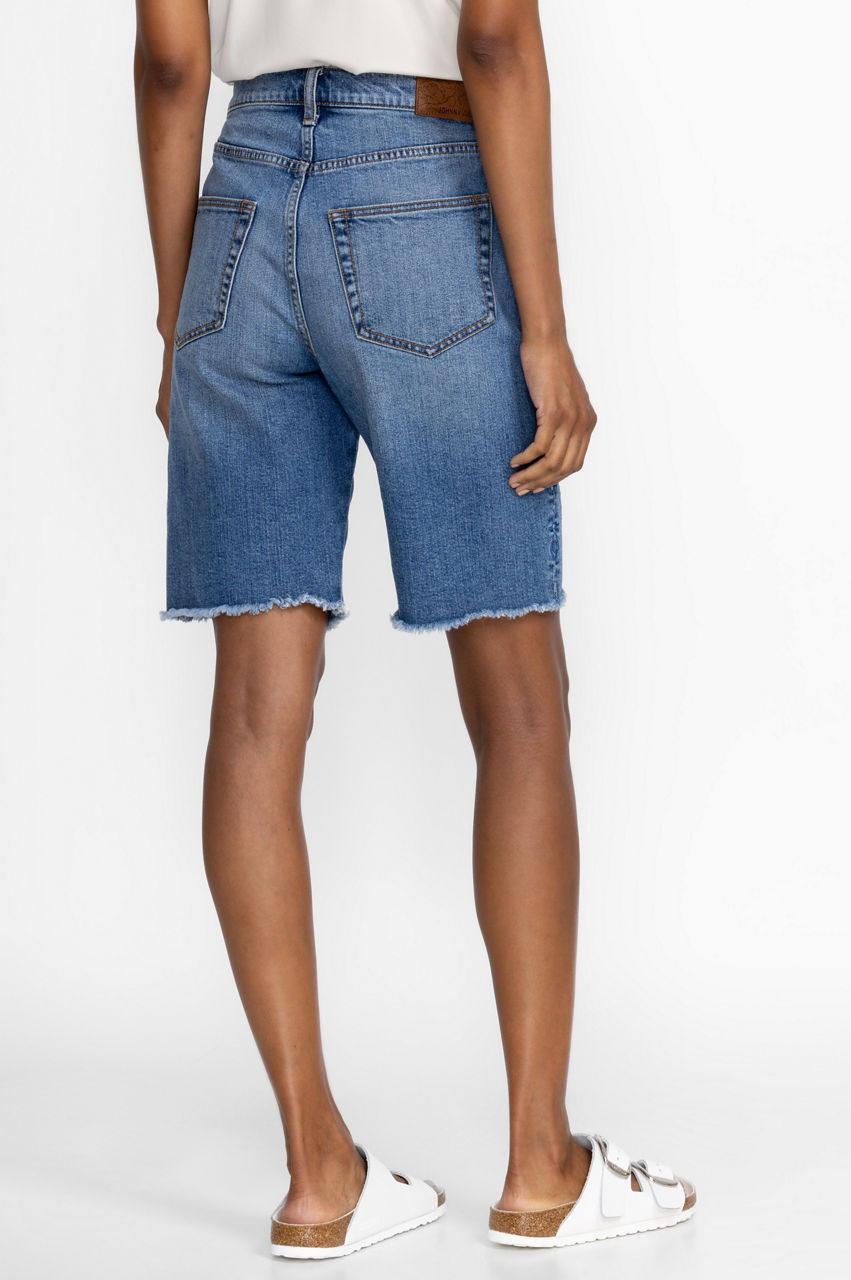 Crafted from durable cotton with a touch of stretch, the JJ Bermuda Shorts merge function with artful details. These denim shorts are a versatile choice for warmer days and boast a front button closure, pockets, belt loops, and an eye-catching floral placement embroidery that runs along the sides. Style with a plain white tee and sneakers for a wear-anywhere daytime outfit.