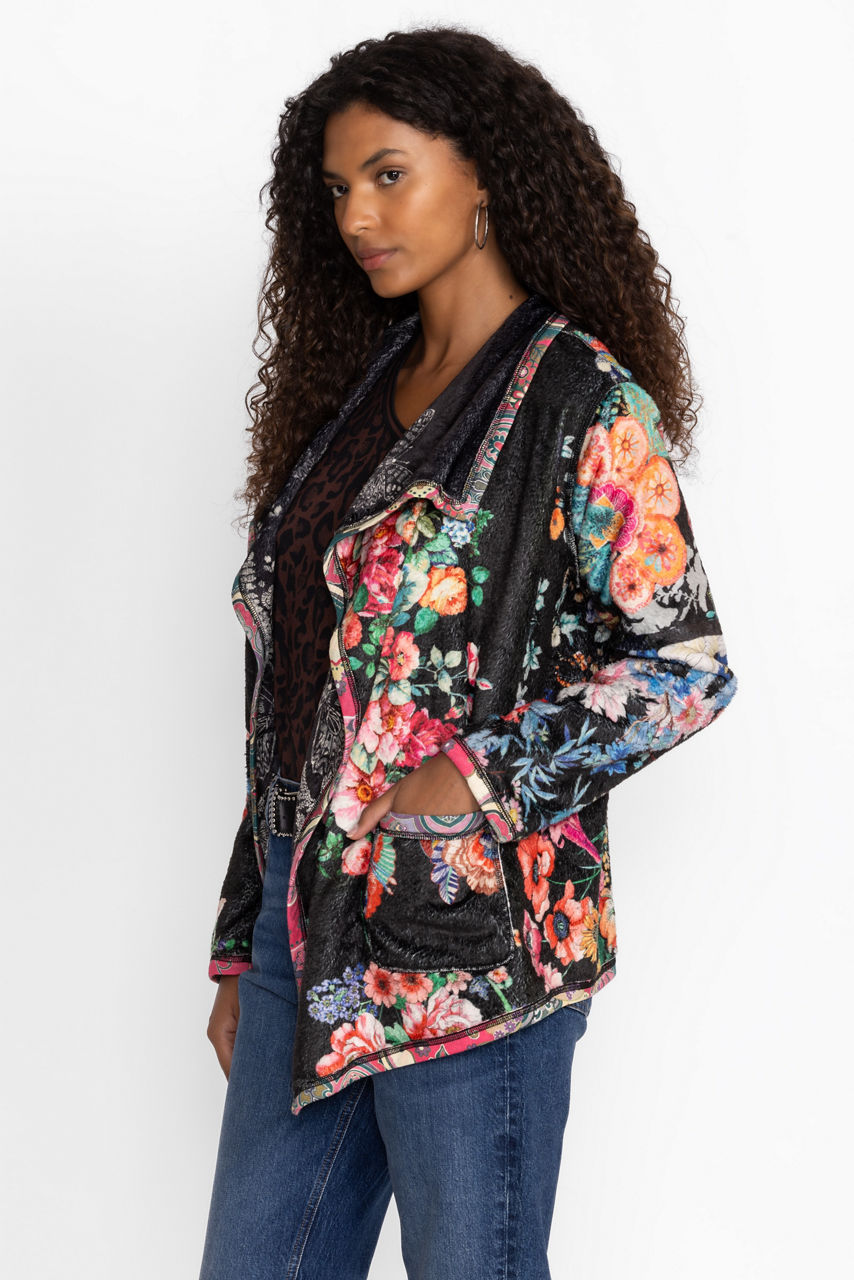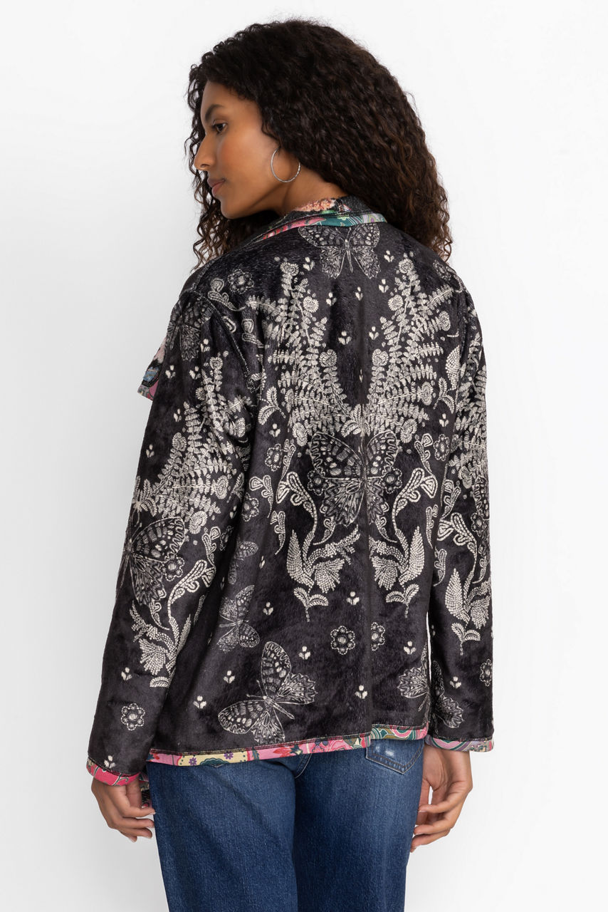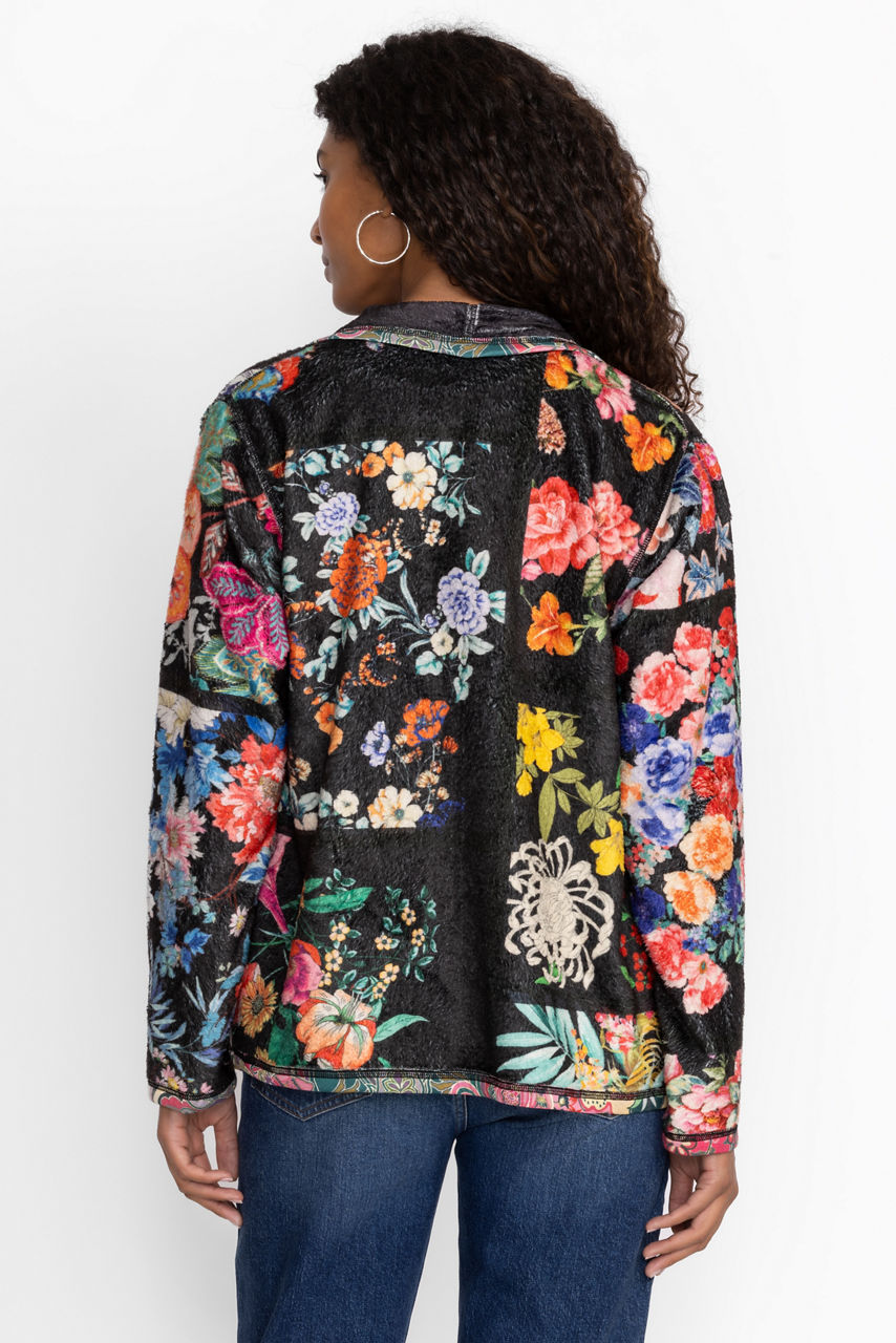 Detailed with stunning color and pattern, the Joan Wrap Sherpa Jacket is equal parts versatile and functional. Featuring a shawl collar and open front, this fully reversible jacket offers two unique designs to choose from and is finished with pockets at the sides. Layer over a silk tank and linen pants for an upscale evening out.