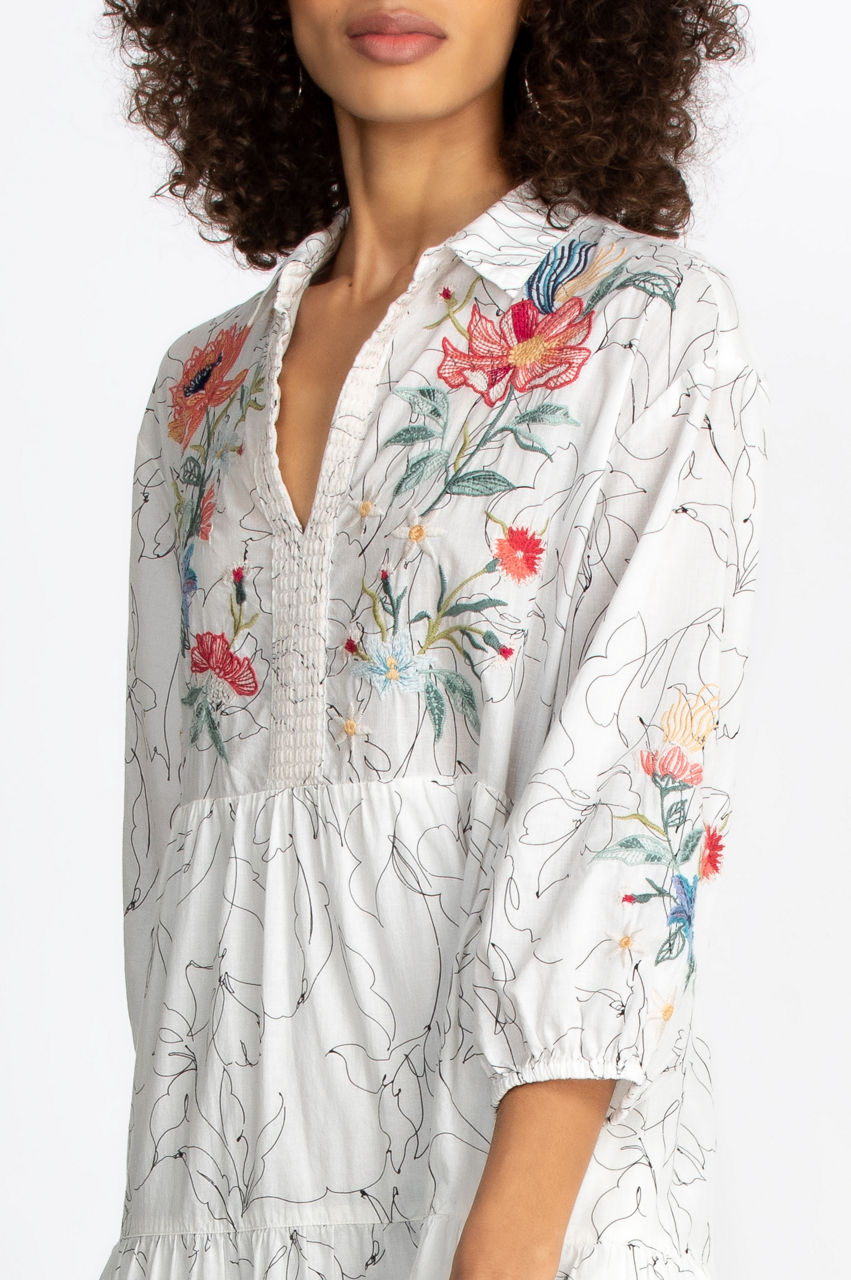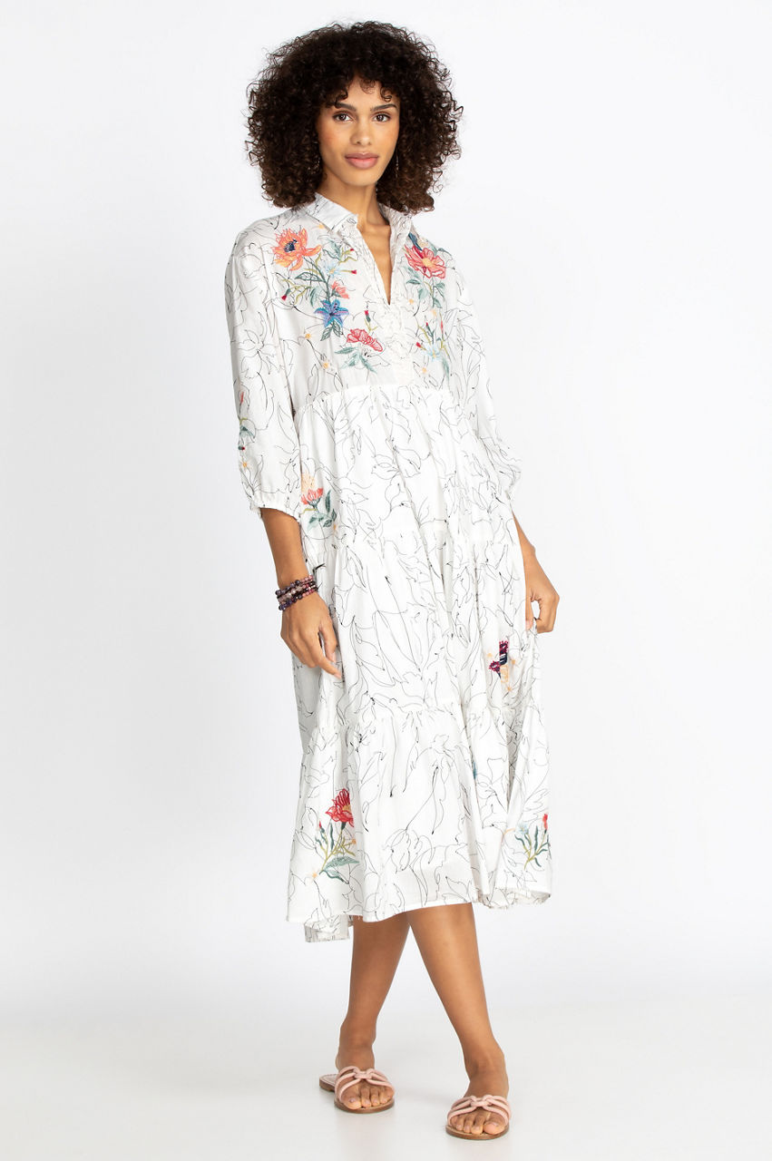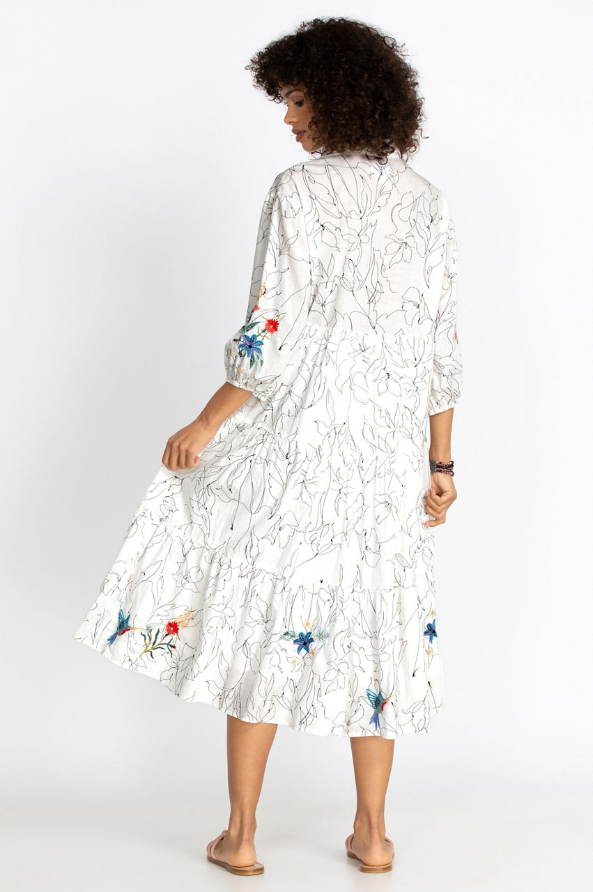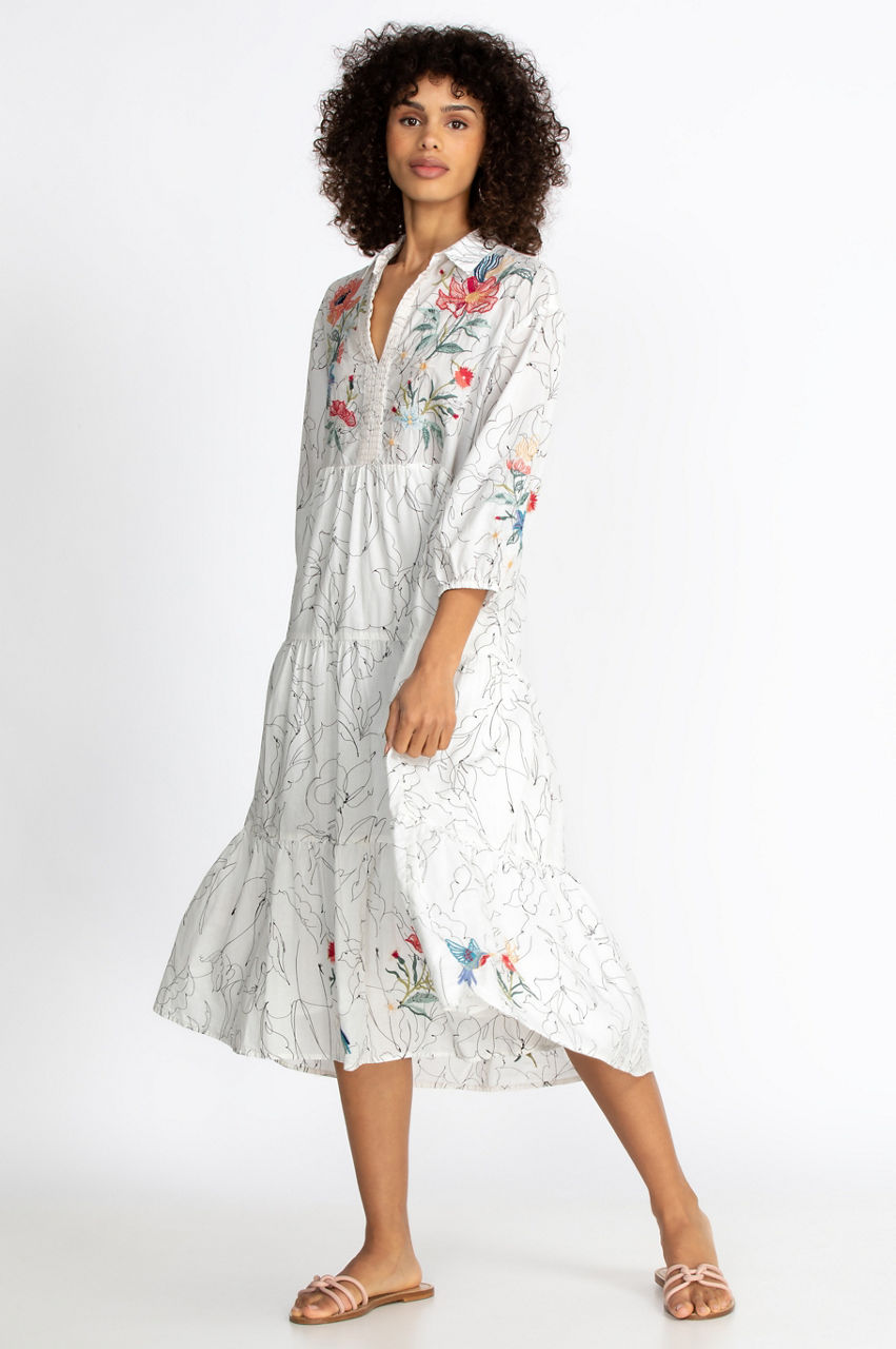 The Jordan Tiered Wanderer dress with classic printed and embroidered flowers and multiple tiered layers creates a gorgeous sculpted look. Timeless silhouettes are designed with this free-flowing tiered dress. Complete the chic boho look by pairing it with a stylish hat, leather clutch, and layered jewelry for a fun evening out.