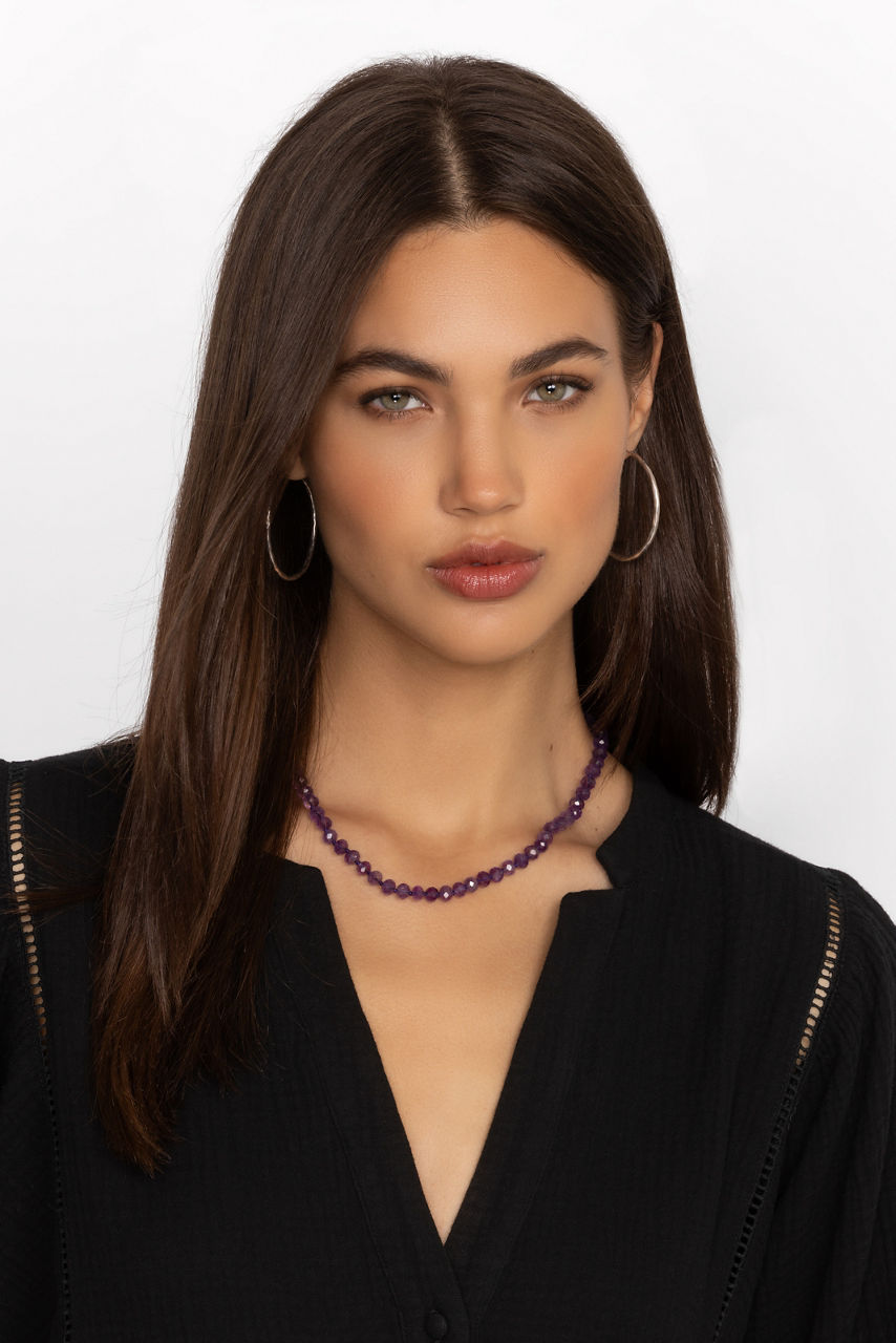 Elevate your jewelry collection with the Joseph Brooks Amethyst Necklace, designed to add a touch of elegance and sophistication to any outfit. Featuring a continuous strand of rich, purple amethyst beads, this necklace is finished with sleek hardware and a secure hook closure for a comfortable fit. Wear alone as a statement piece or layered for a more dramatic effect.
