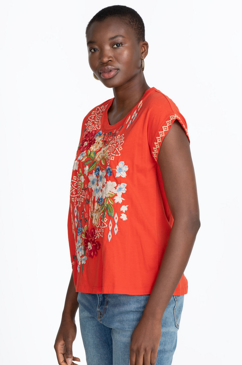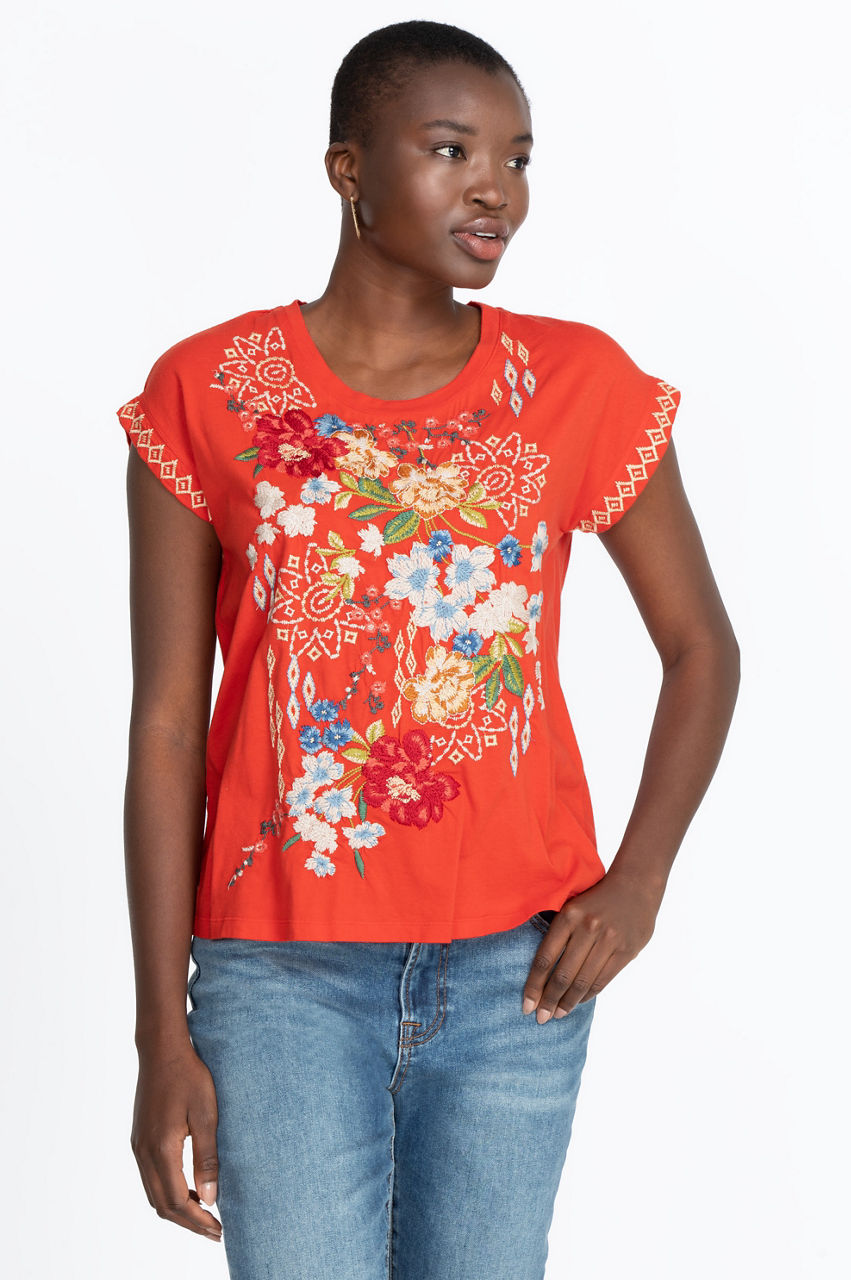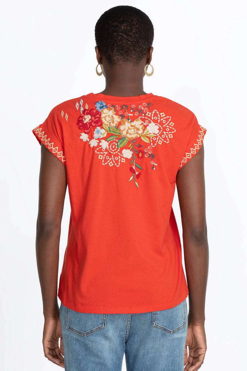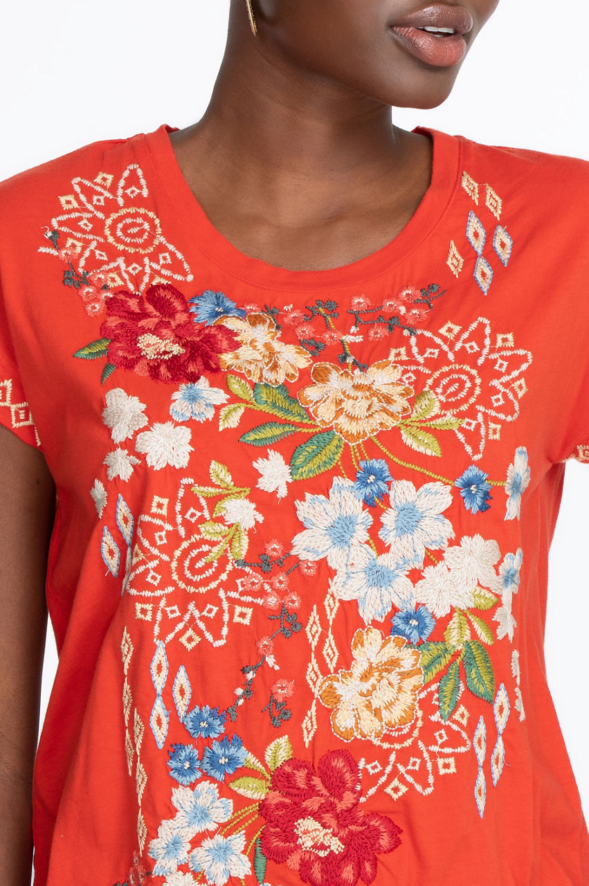 Our Josephine Relaxed Tee combines comfort with elegant style, featuring whimsical embroidery and a classic round neck. It's a perfect additional wardrobe piece, especially for a weekend getaway and beach outfit. Look stylish all season round - pair it with your favorite skirt, artisan hat, or denim jacket. Wear it across all seasons for a cozy, casual vibe.