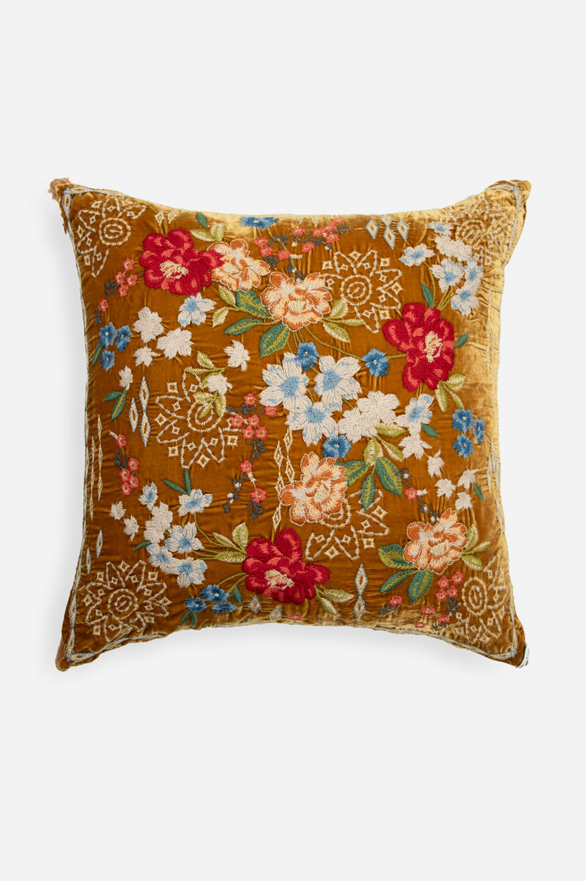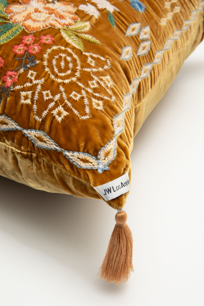 Increase any seat's comfort, style, and support with our Josephine Velvet Pillow. These decorative pillows feature multicolored floral embroidery containing tassel accents at each corner. This plush pillow with vibrant colors easily mixes and matches with other solid prints.