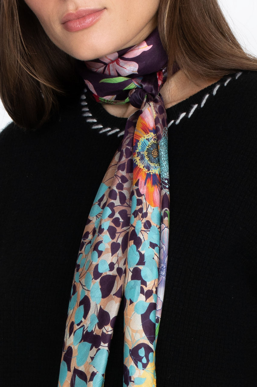 Add the finishing touch to a charming Bohemian outfit with our Joy Mela Scarf. Made from 100% silk, this piece will add beauty to any ensemble. Pair this scarf with jeans and a boho blouse for a perfectly polished look.
