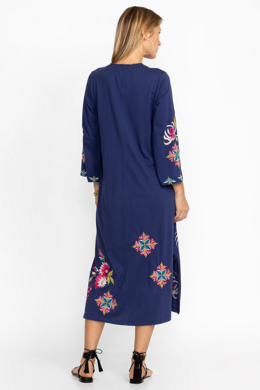 Delivering classic elegance in distinctive casual wear, the Julie Kimono Sleeve Dress offers both comfort and style. Crafted from 100% cotton and beautifully detailed with intricate placement embroidery, this maxi dress features an open V-neckline and flowing kimono style sleeves. Pair with strappy sandals and festive jewelry for a complete look.