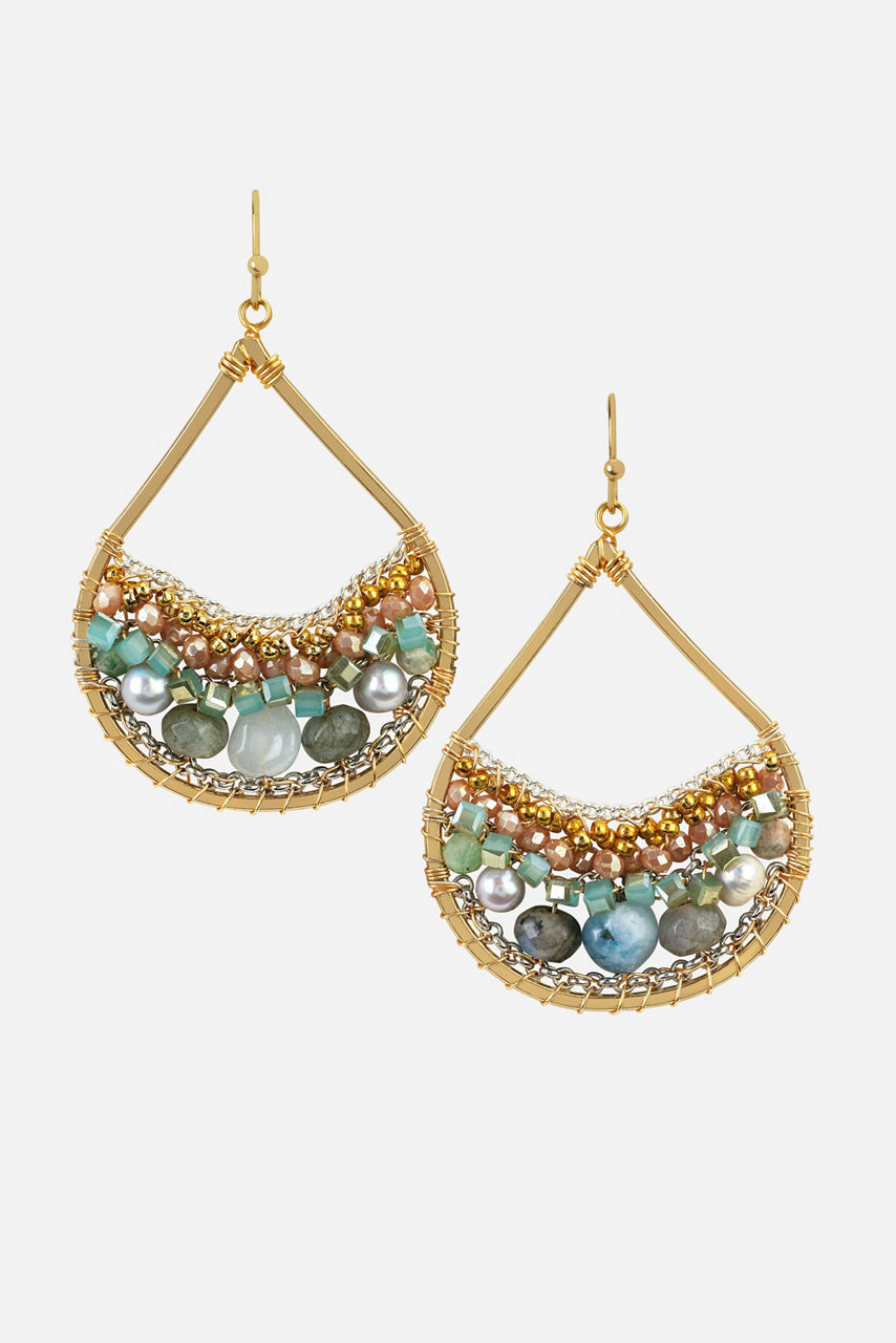 A classic style with a pop of boho, our June Beaded Earrings add a perfect touch of charm to any look. These chic earrings feature a delicate metallic base with whimsical green and blue stones throughout. This colorful piece can effortlessly tie any outfit together for any occasion from casual brunches to formal dinner parties.