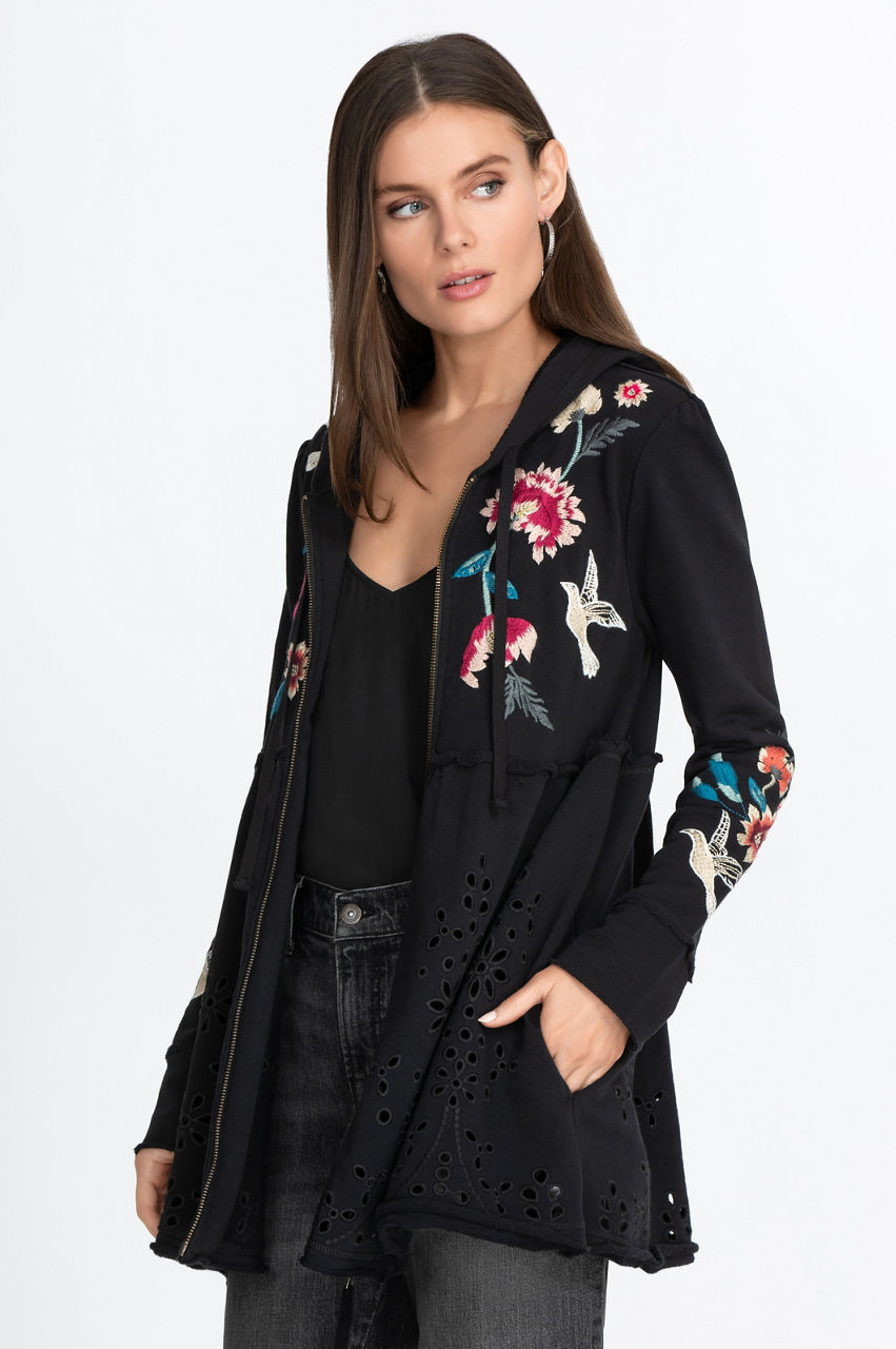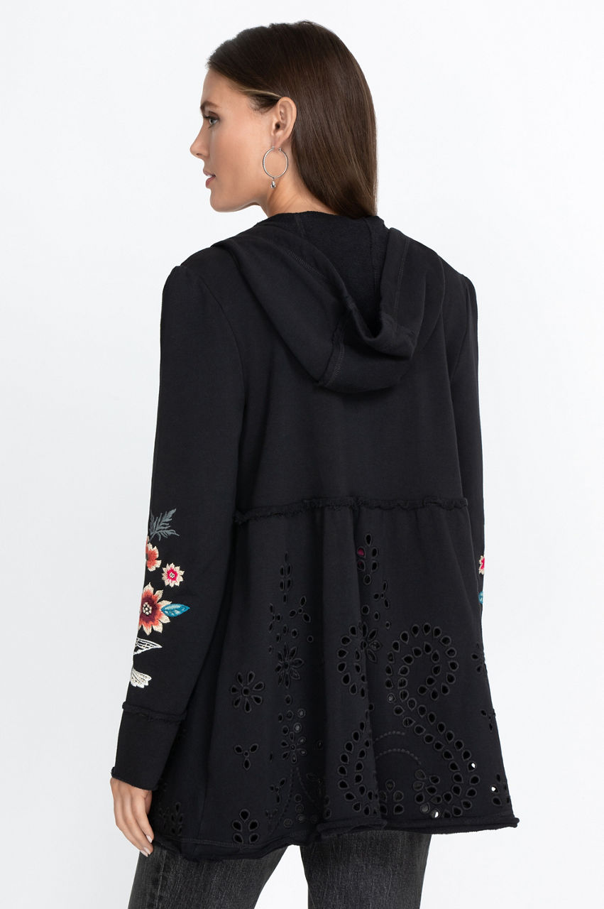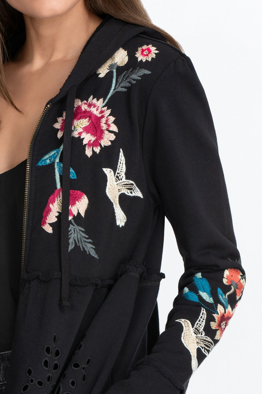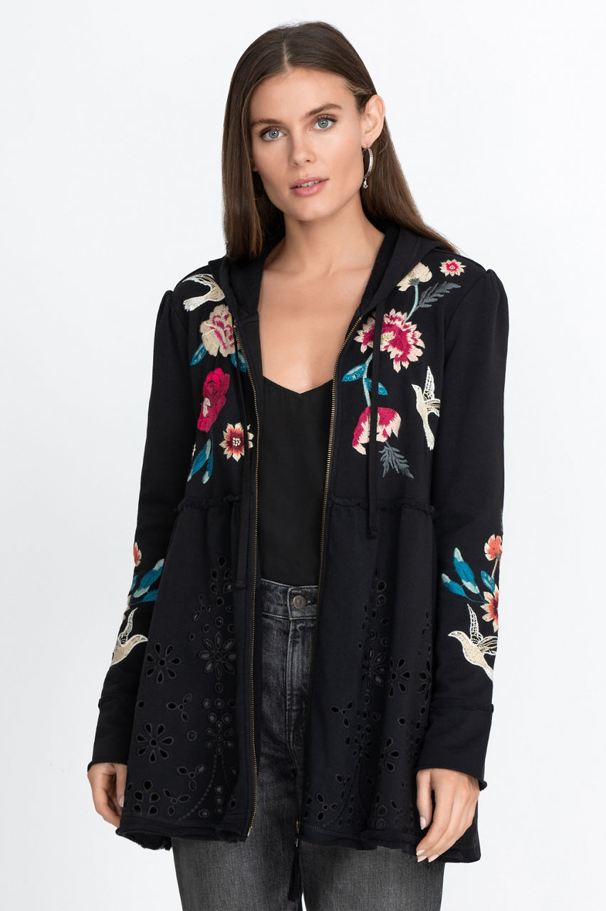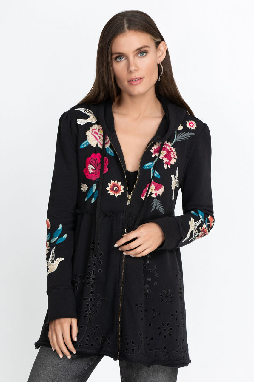 The Junia French Terry Tiered Hoodie is a stylish twist on the sportswear staple with its tiered construction and flowy hem detail. This elegant hoodie is both comfortable and fashionable, and the floral and other nature-inspired motifs will introduce some color to your outfits. Combine this modern and sporty piece with some leggings and sneakers for a laid-back look.