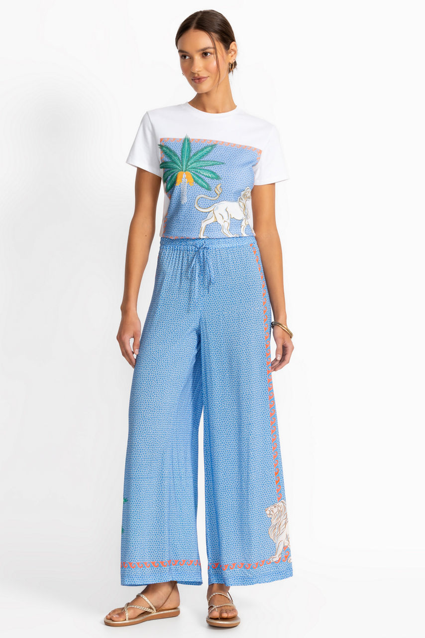 Crafted from a lightweight flowing fabric, the JW X Paolita Pigalle Trousers feature a uniquely crafted hand-drawn print by Paolita. Designed with an elastic waist with a drawstring for a customizable fit, these vibrant trousers boast brilliant resort inspired images. Pair with the Marilyn Ruched One Piece for a vacation-ready look.