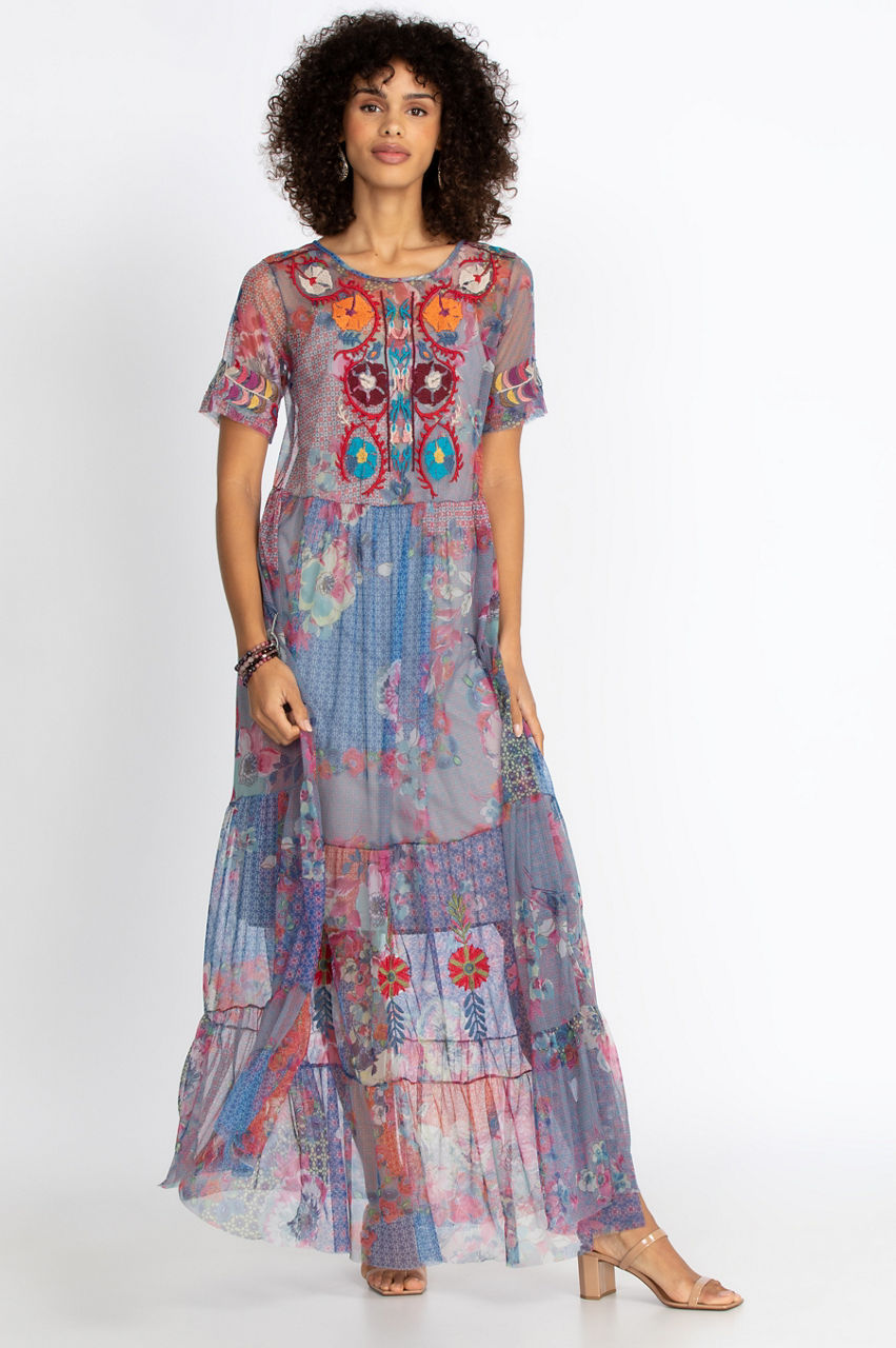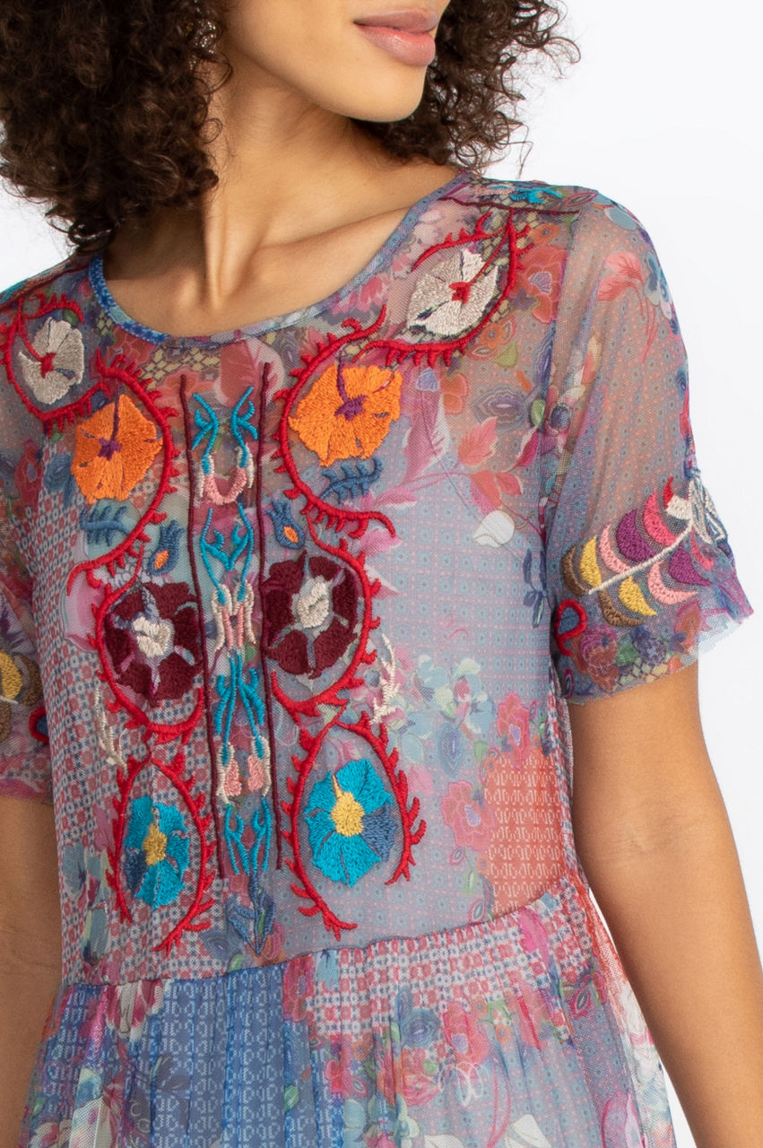 The Kadence Tiered Mesh Dress hints at your feminine side with sheer sleeves and multicolored pattern. The bright colors speak to your glowing personality. Pairing with your confident stride, make sure to include your beautiful silver jewelry for a fashion forward outfit.