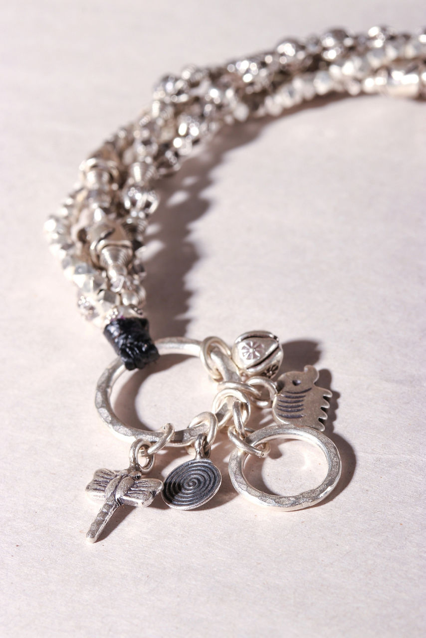 Handcrafted from 950 Karen Silver, the Karen Charm Beaded Bracelet offers a sparkling layered jewelry look. Featuring multiple strands of beads with a combination of high polish and oxidized finishes, this eye-catching bracelet is adorned with a series of delicate charms as the perfect final touch. Pair with delicate silver earrings and add a fitted knit dress for a girls' night out.