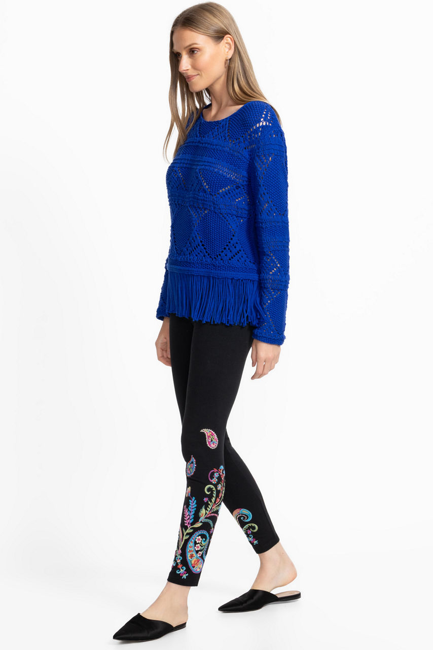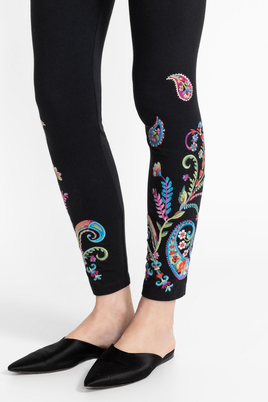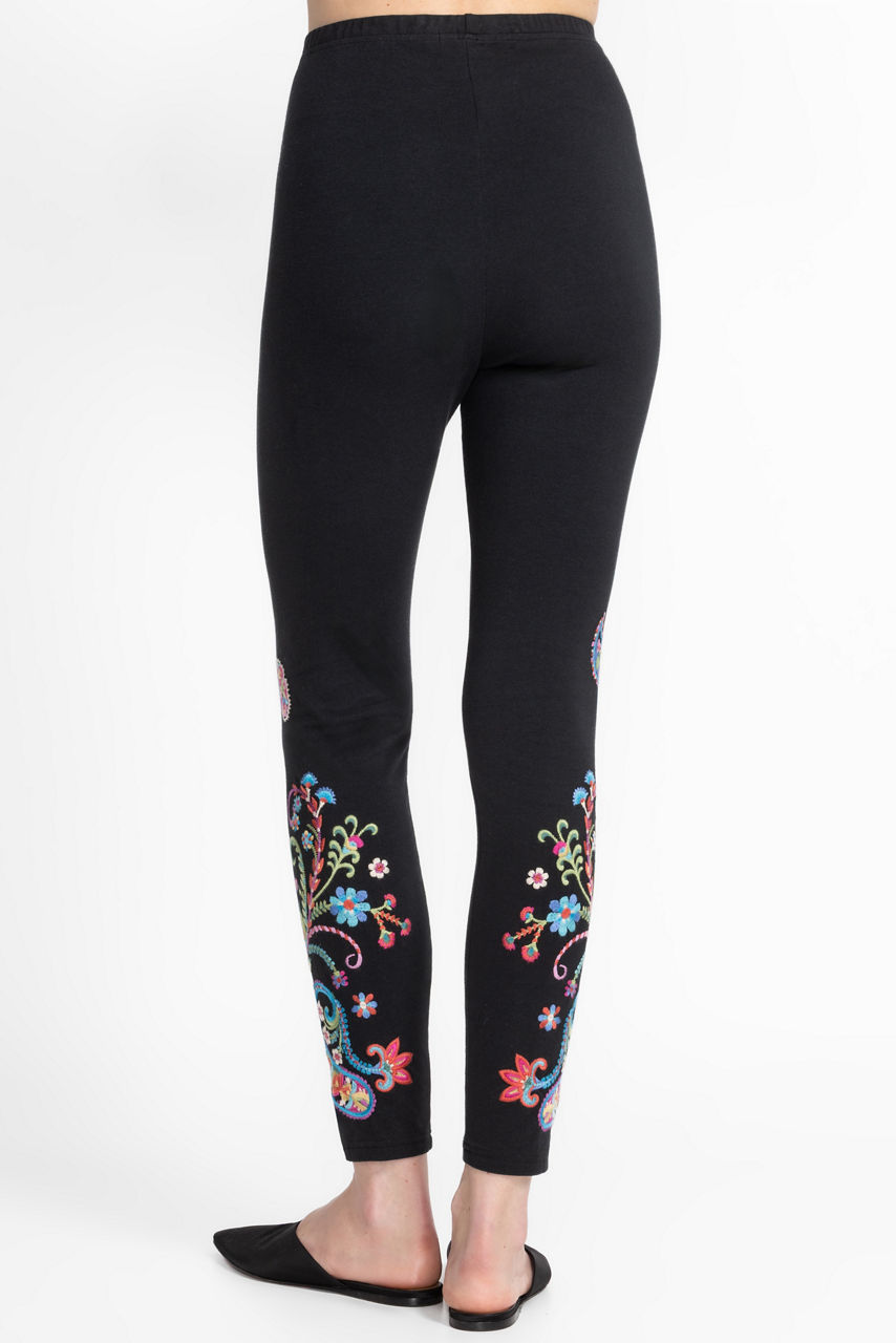 Boldly embellished with vibrant floral embroidered detailing, the Karime Leggings offer a fresh take on classic black leggings. Crafted from a rich cotton blend with a hint of stretch, these leggings feature an elastic waist and tapered legs with colorful detailing at the hemlines. Pair with a colorful tee and fashion sneakers for a casual everyday look.
