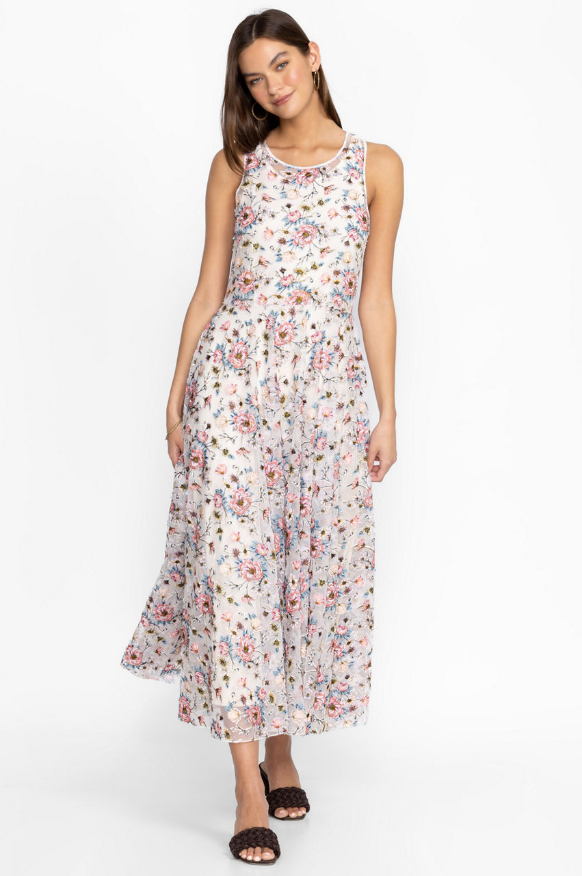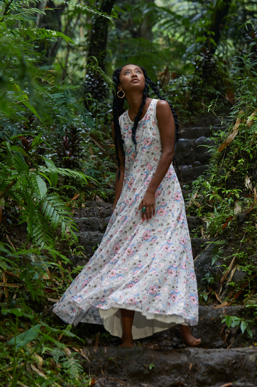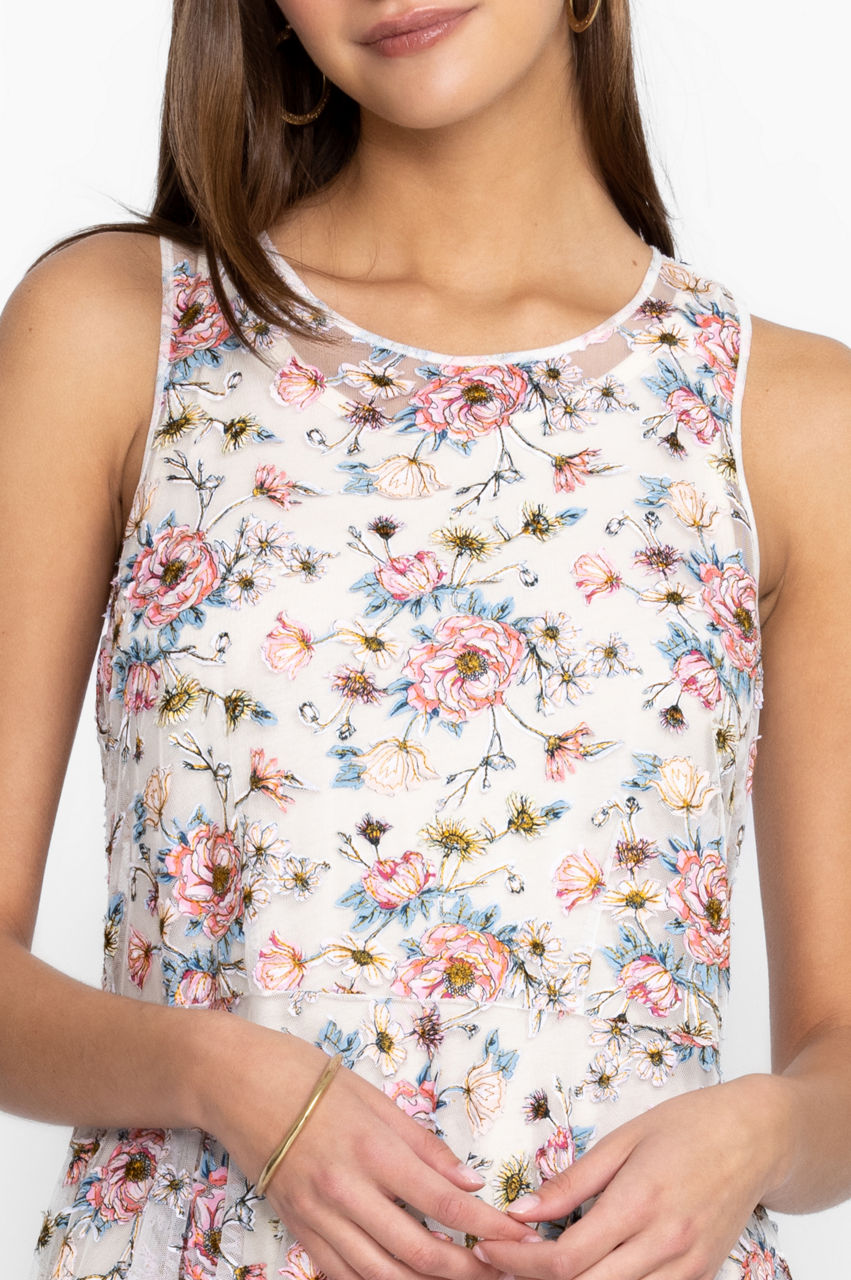 Channeling a 90s vibe, the Karina mesh dress is a must-have warm-weather staple thanks to its easy-to-style color scheme and comfortable fit. This dress is made from a breathable mesh material with a slip dress, a round neck, and bouquets of bright blooms. Wear with slides or sandals for a nonchalant daytime ensemble.