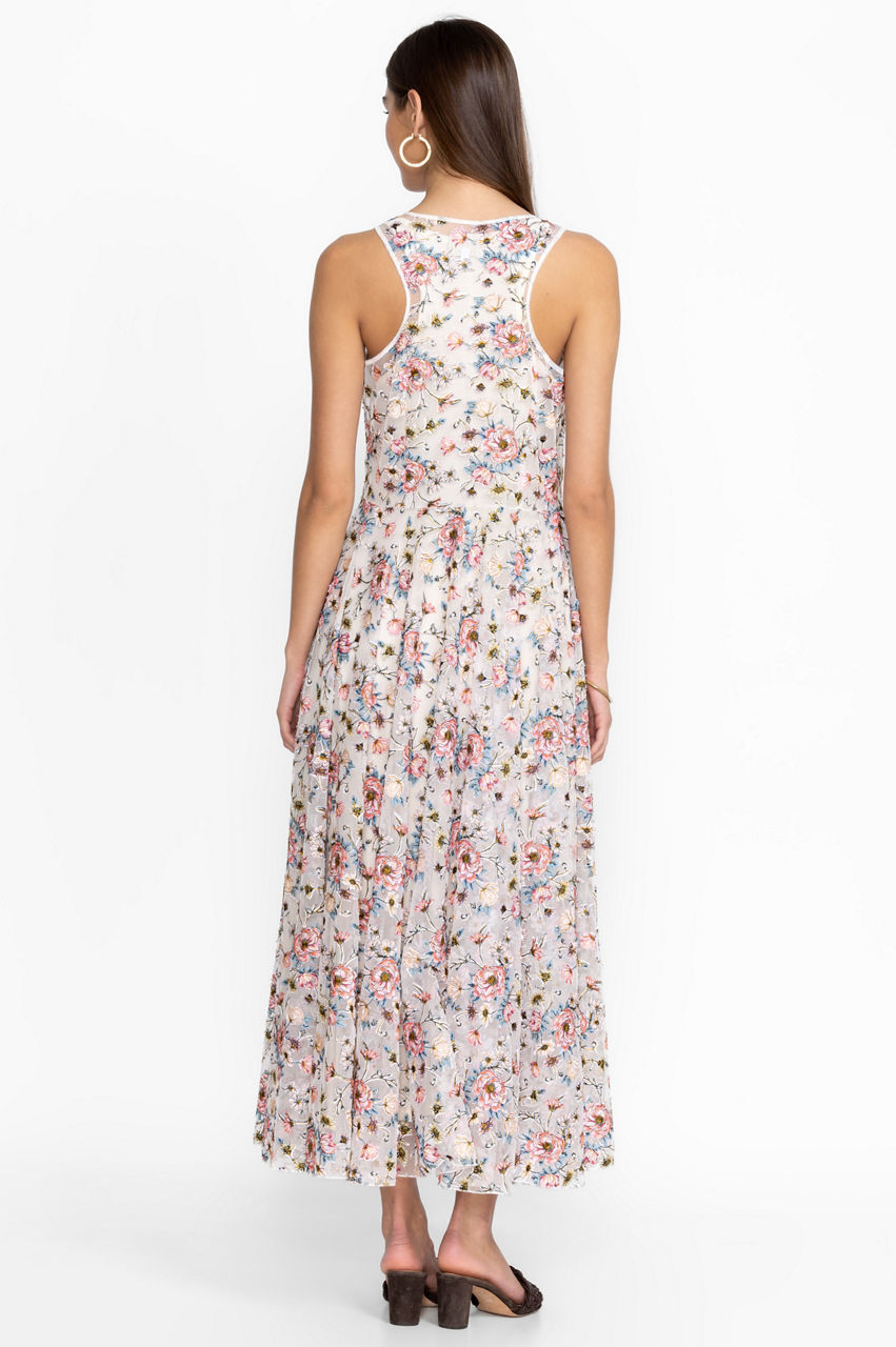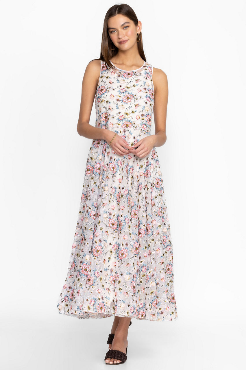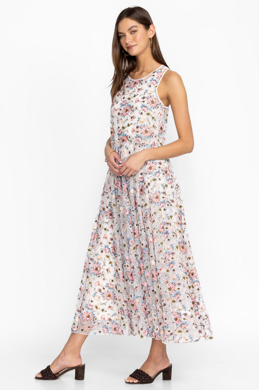 Channeling a 90s vibe, the Karina mesh dress is a must-have warm-weather staple thanks to its easy-to-style color scheme and comfortable fit. This dress is made from a breathable mesh material with a slip dress, a round neck, and bouquets of bright blooms. Wear with slides or sandals for a nonchalant daytime ensemble.
