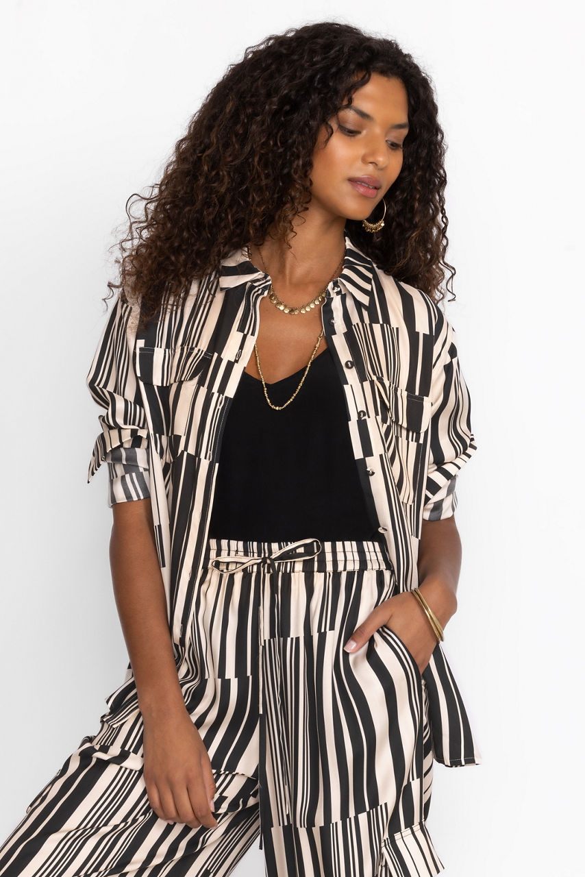 Crafted from a lightweight silk blend, the Kassie Double Pocket Shirt offers a fresh take on a classic button-down. Featuring a traditional collared button front, this unique blouse features patch pockets and box pleating for added texture. Pair with black palazzo pants and leather flats for a modern office look.