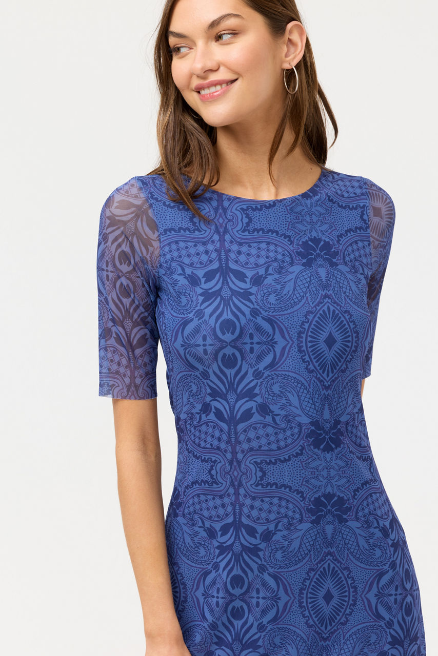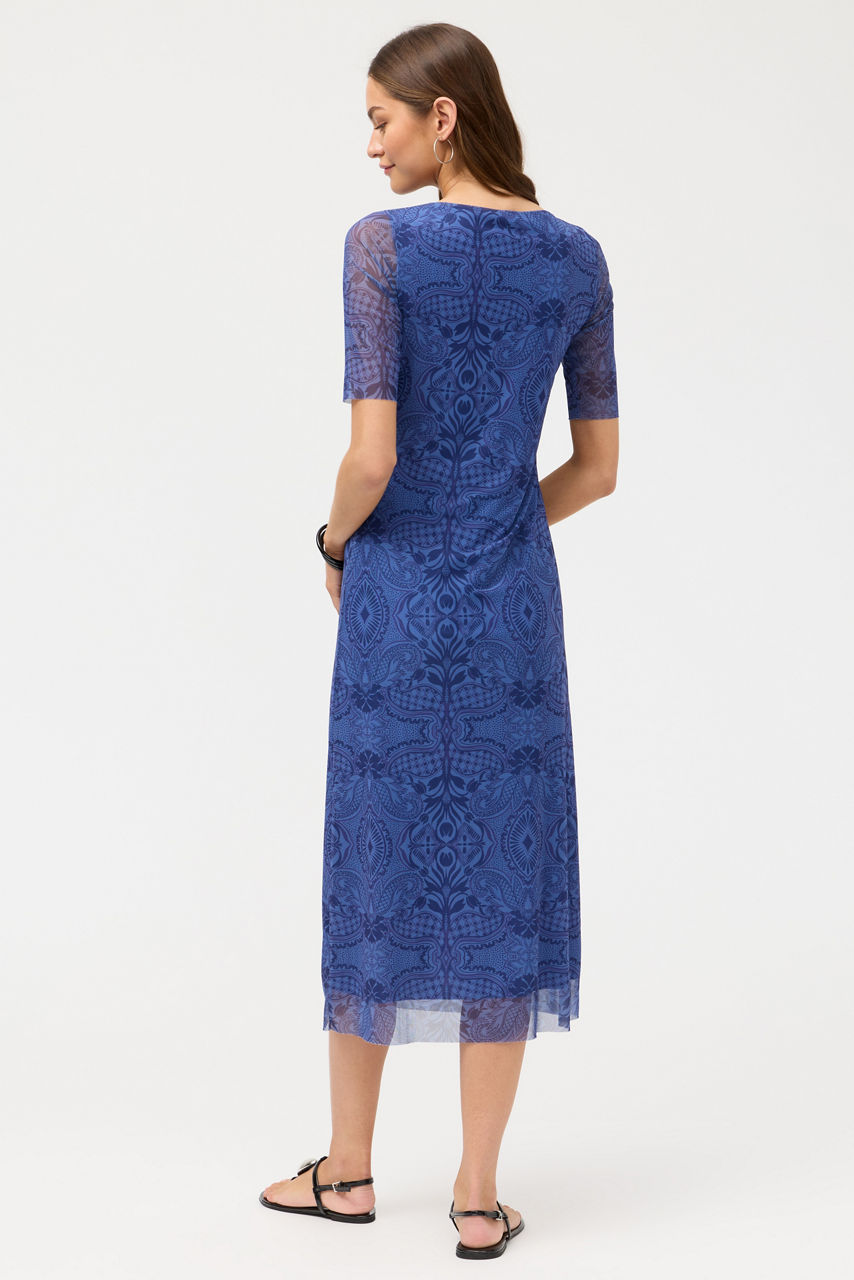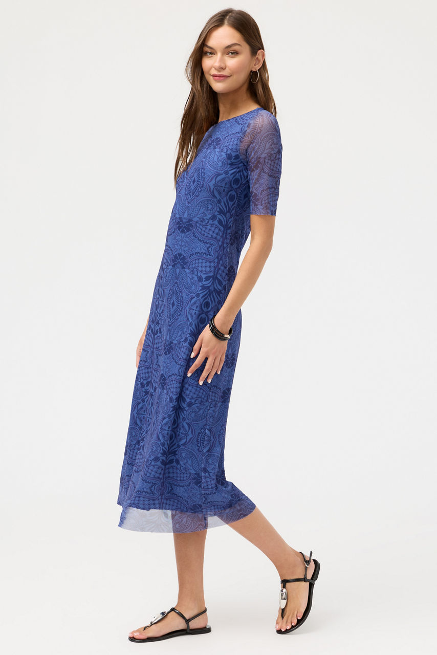 Crafted from a lightweight breathable mesh, the 3/4 Sleeve Mesh Midi Dress is equal parts elegance and comfort. Designed with a rounded neckline and 3/4 sleeves, this fully lined dress is finished with an intricate tone-on-tone pattern for a subtle eye-catching look. Pair with classic pumps and a beaded clutch for an evening out.