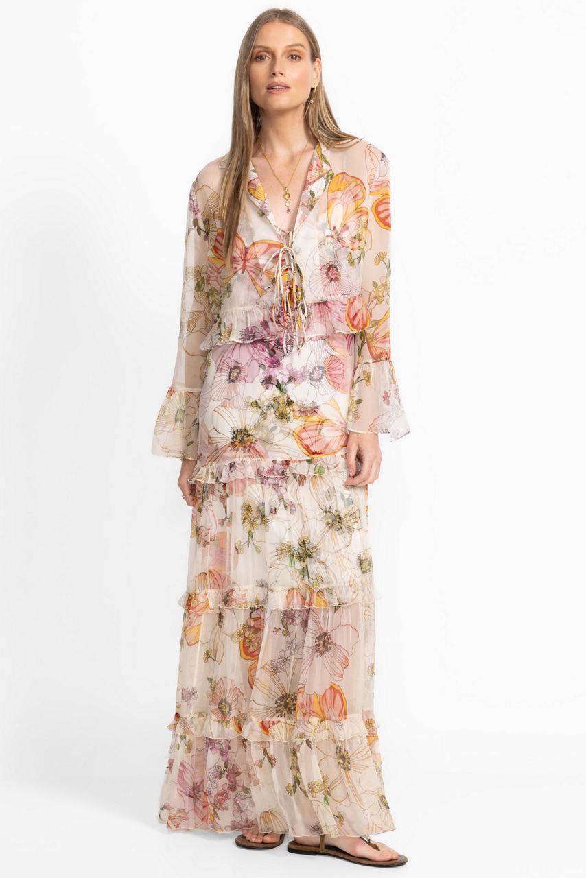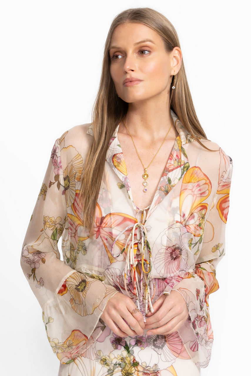 Crafted from luxurious silk, the Katriz Ruffle Bolero brings floral flair to your wardrobe. Designed with a crop length and a front-tie closure, this bolero jacket is finished with ruffled detailing at the sleeves and hemline. Layer over a fitted black dress and pair with coordinating pumps for a bold evening look.