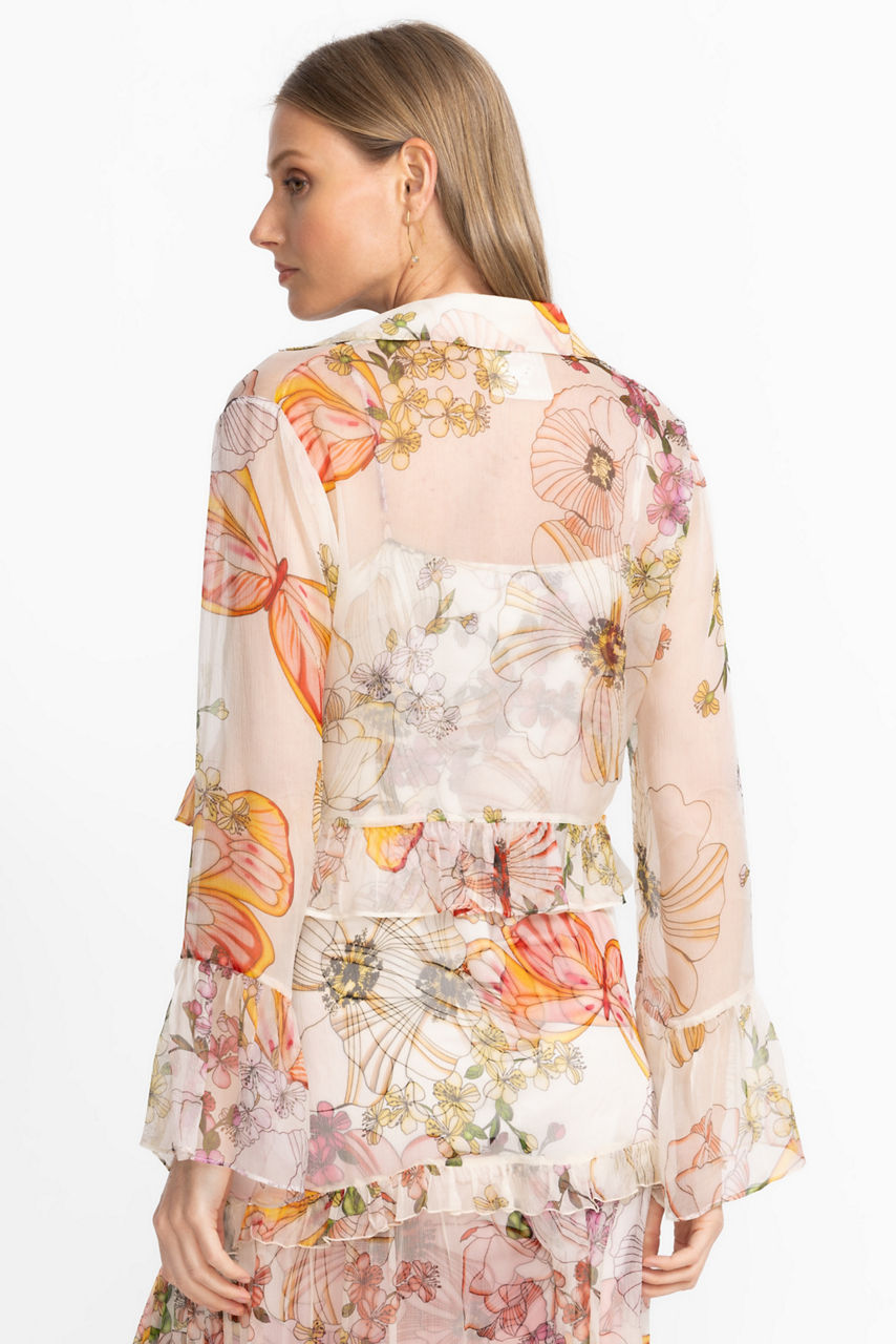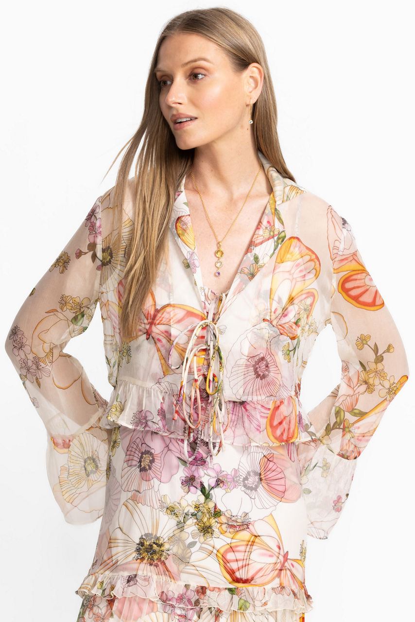 Crafted from luxurious silk, the Katriz Ruffle Bolero brings floral flair to your wardrobe. Designed with a crop length and a front-tie closure, this bolero jacket is finished with ruffled detailing at the sleeves and hemline. Layer over a fitted black dress and pair with coordinating pumps for a bold evening look.