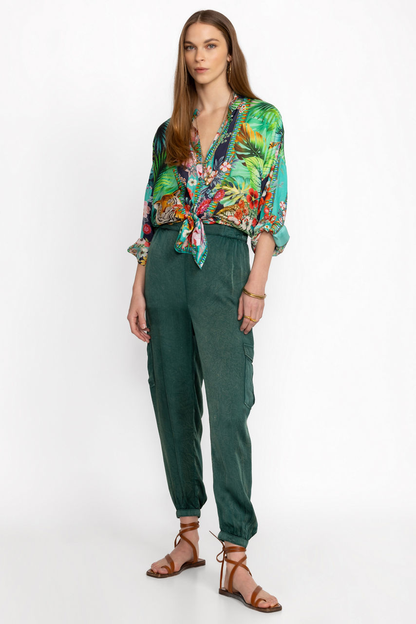 Crafted from a lightweight flowing fabric, the Khay Viscose Joggers offer elevated style paired with the comfort of classic joggers. Featuring an elastic waist and large cargo pockets, these pants are cuffed at the ankle creating a relaxed leg line silhouette. Pair with the Khay Viscose tank and a classic denim jacket for a lunch date with friends.