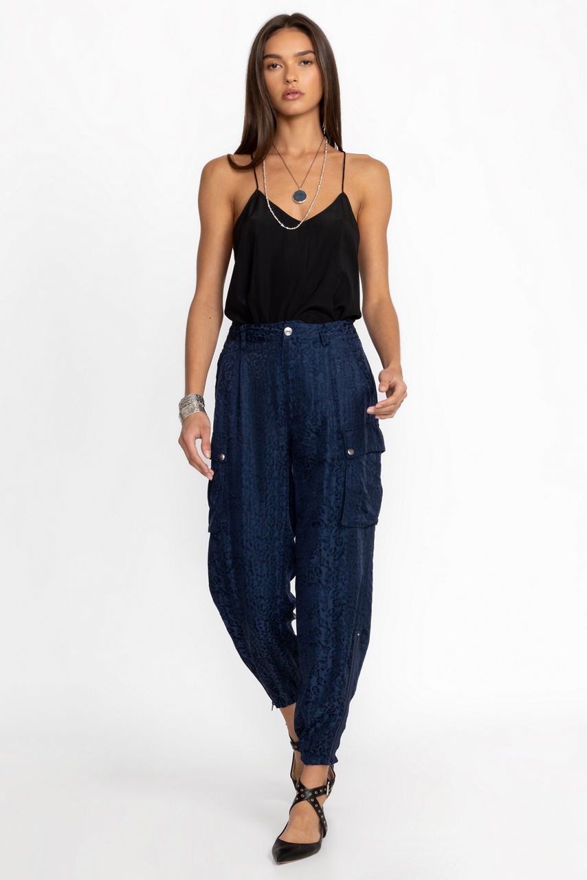 Crafted from a soft Tencel blend, the Kiarra Jacquard Pants offer classic casual dressing with an elevated feel. Featuring a zip front and snap closure side pockets, these pants are finished with elastic cuffs at the ankle. Pair with a fitted tank and lightweight jacket for a put-together weekend look.