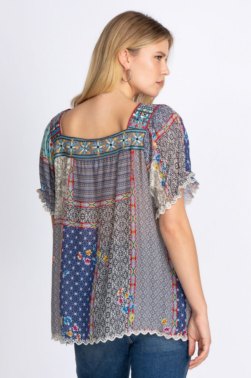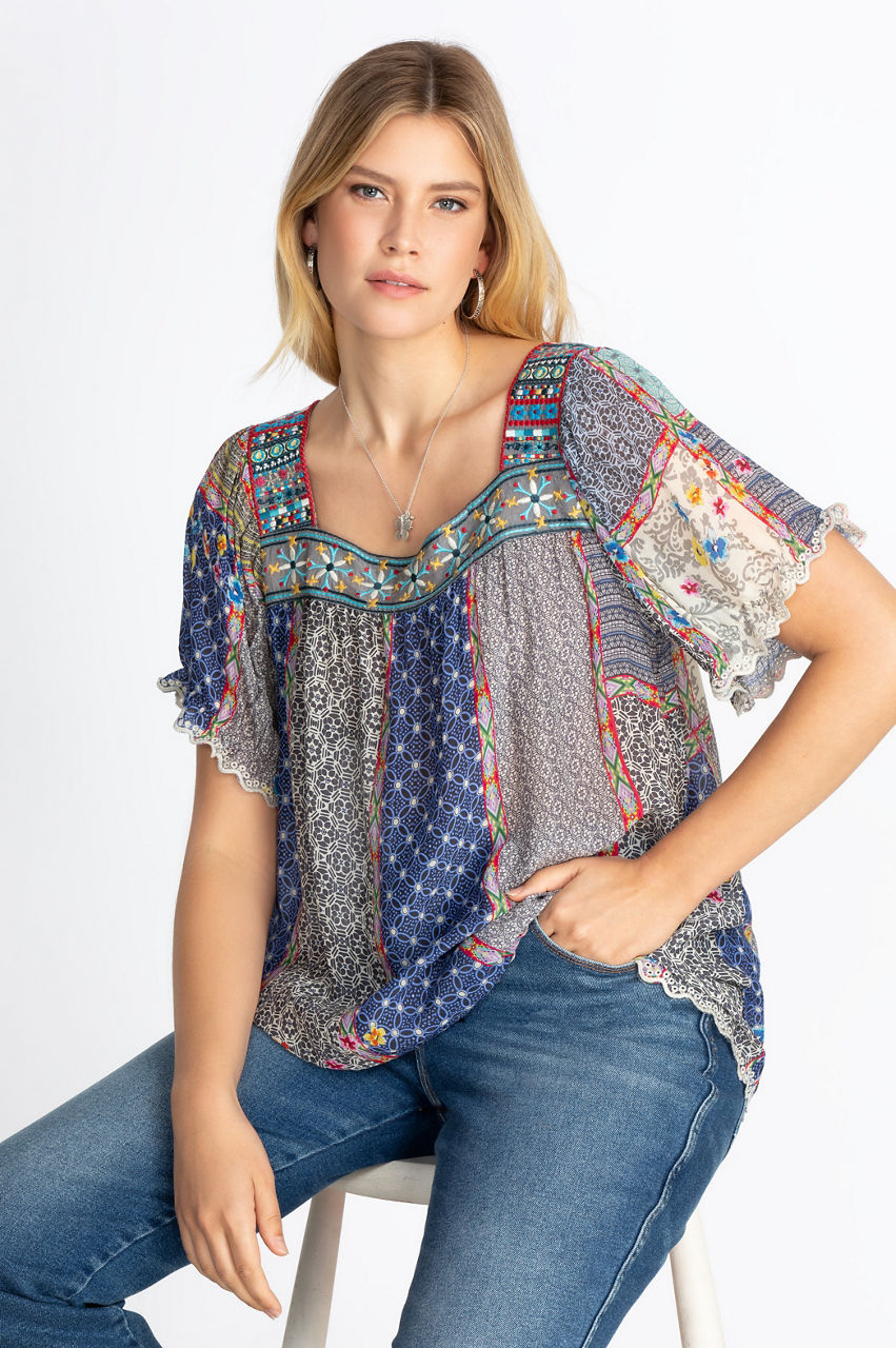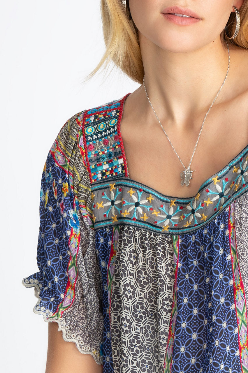 Our Kichica Padme Blouse will take you from one season to the next with its timeless detailing and flawless design. Pair this piece with skinny jeans and your favorite boho ankle boots to pull off an effortless Bohemian look. Complete the ensemble with a chic boho tote.