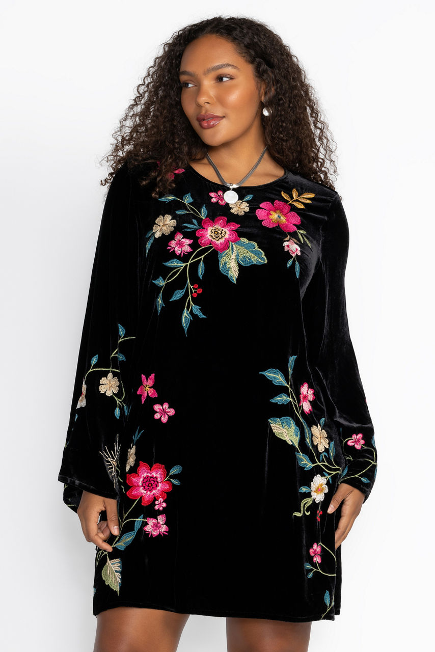 Crafted from a luxurious silk blend, the Kimono Sleeve Swing Dress is embellished with bold floral embroidered detailing. Featuring a boat neckline and kimono-style sleeves, this dress is impeccably finished with a keyhole back and relaxed-fit swing bodice. Pair with colorful espadrille heels and a coordinating clutch for a brunch date.