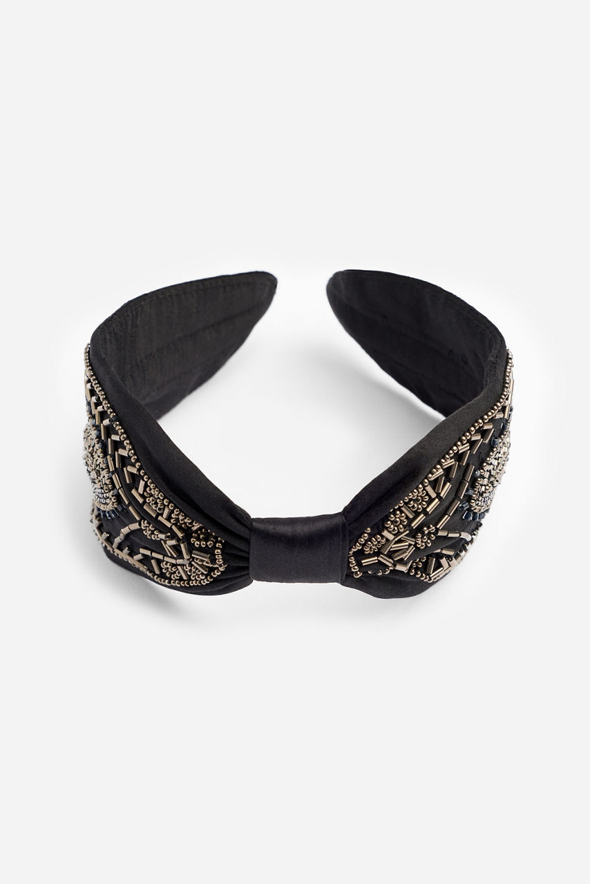 Expertly crafted from a rich fabric, the La Jolla Silk Headband is adorned with an intricate sequin and bead detail. Featuring a decorative twist, this bold headband is simple and sophisticated and features ribbon wrapped ends for comfort. Pair with a the La Jolla Kaftan Top and Pants for an elevated casual look.