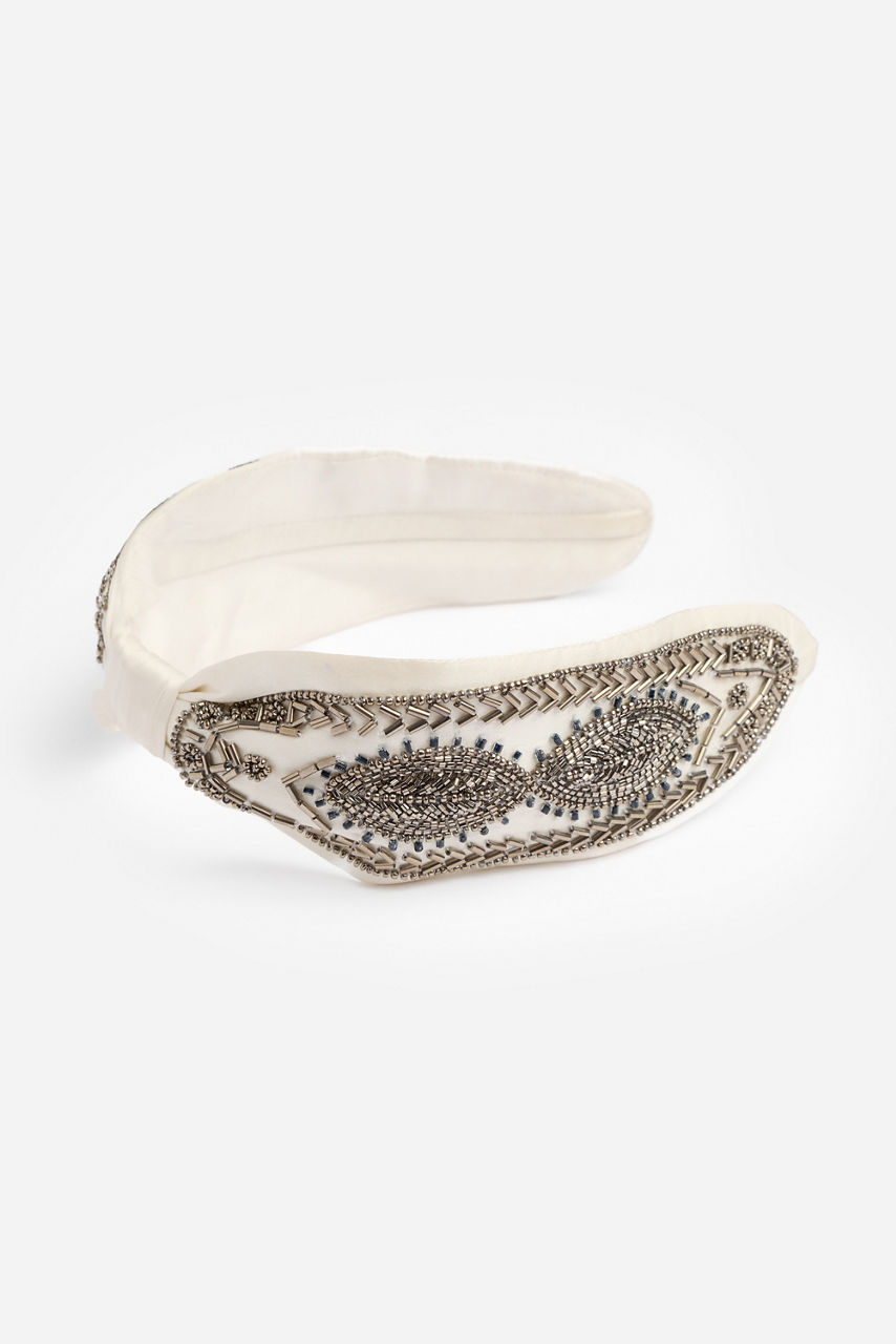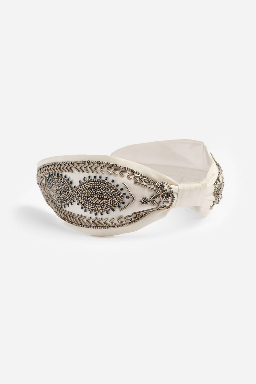 Expertly crafted from a rich fabric, the La Jolla Silk Headband is adorned with an intricate sequin and bead detail. Featuring a decorative twist, this bold headband is simple and sophisticated and features ribbon wrapped ends for comfort. Pair with a the La Jolla Kaftan Top and Pants for an elevated casual look.