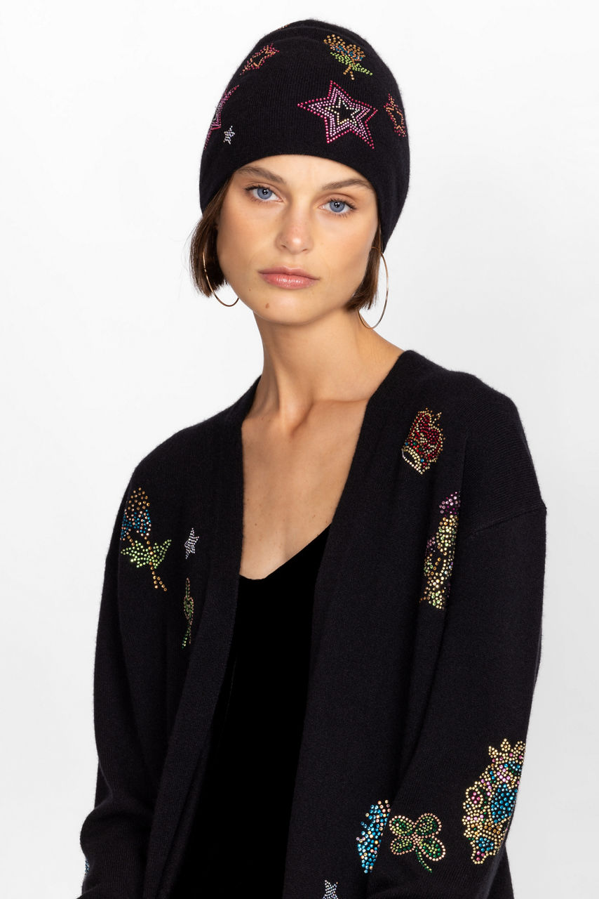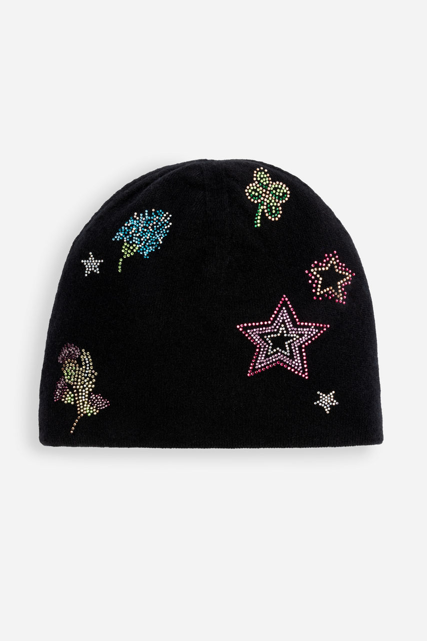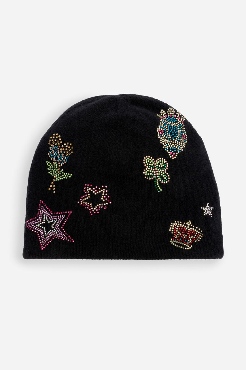 Imagined in black, the Ladie Rhinestone Beanie introduces a playful touch to your cold-weather routine. Crafted from a sumptuous wool cashmere mix, this warm beanie is characterized by colorful rhinestone motifs. Wear this beanie with a cozy knit, padded coat, and jeans for a chic outdoor ensemble.