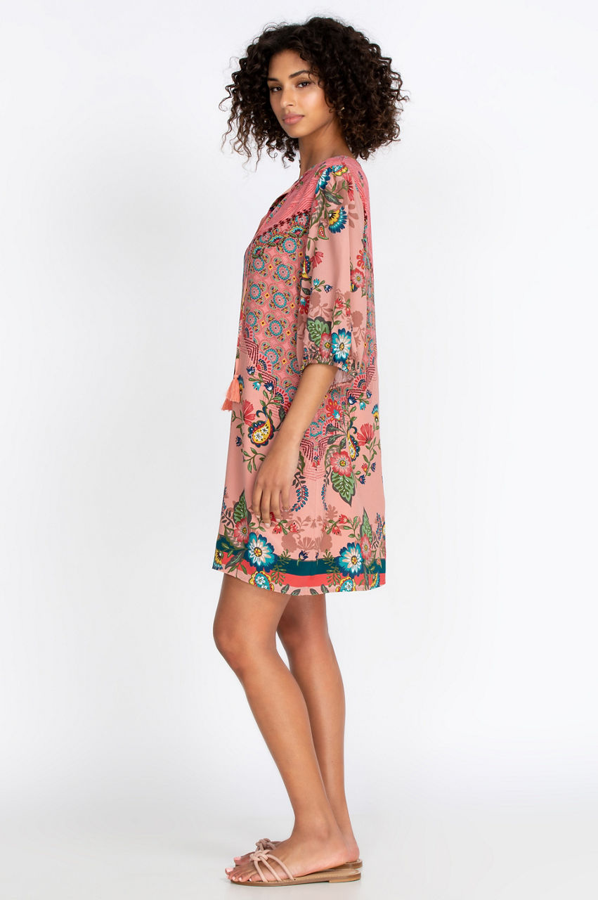 Our unforgettable Lakshmi Mini Dress features jaw-dropping patterns, absolutely stunning accents, and ultra-soft fabrication to give you a timeless staple to take you from this season to the next. Pair this elegant dress with some open-toed heels, a wide-brimmed hat, and an elegant necklace to pull together a boho-inspired outfit you ll wear again and again.