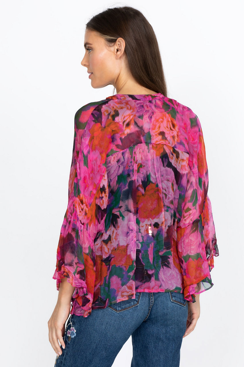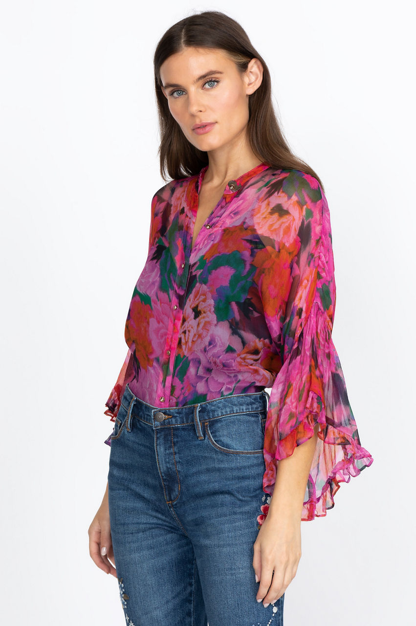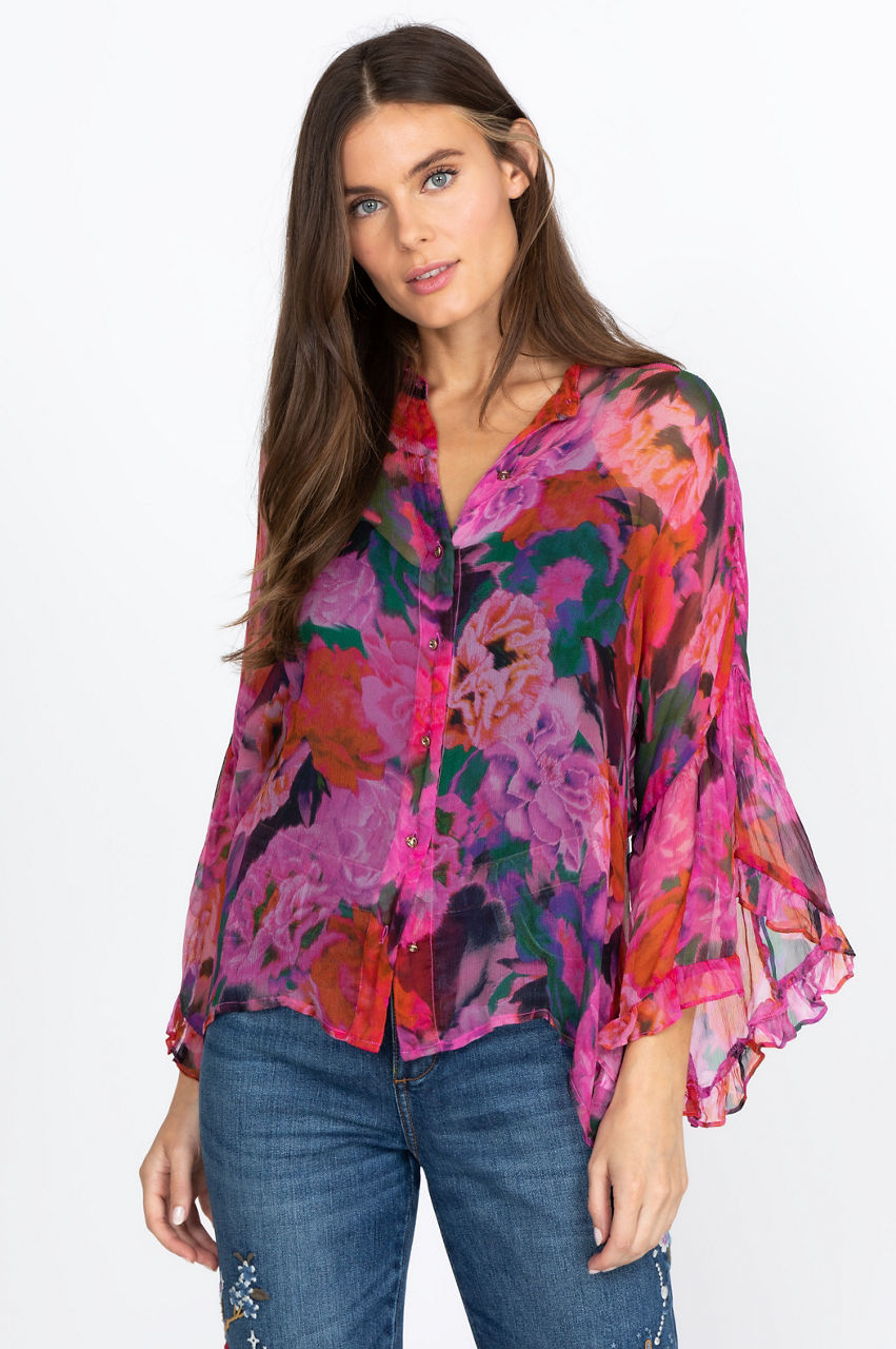 A fun floral motif and bright colors allow the Lars Button Down Shirt to be worn throughout every season with ease. The 100% silk material helps provide a luxurious feel, and a separate cami is included to help you create stylish ensembles. Pair this button down with slacks for a more formal occasion. Wear it with denim and booties to cap off a more casual appeal.