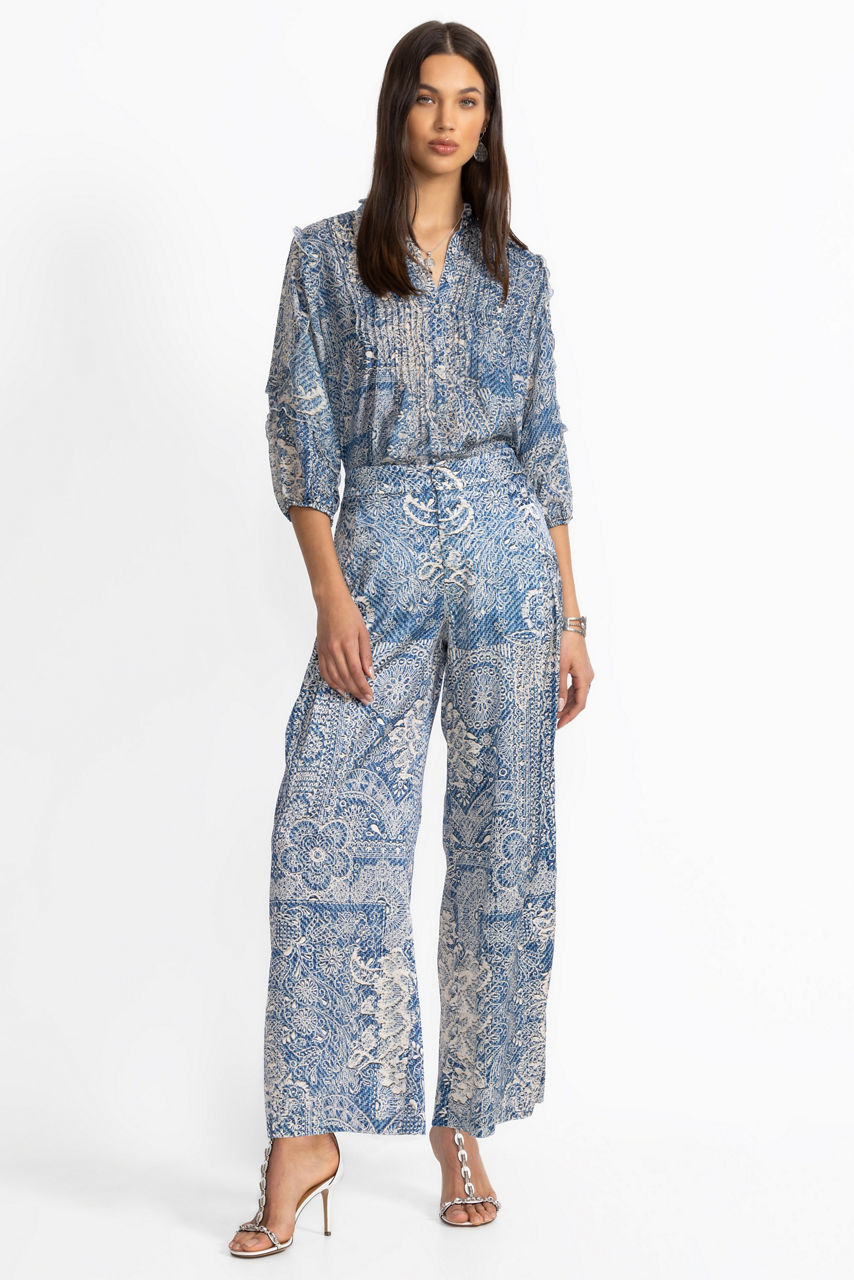 Beautifully adorned with a kaleidoscope of florals and paisley, the Lauchlen Pants are crafted from a silk blend with a hint of stretch. Designed with a comfortable elastic waist and front fly, these unique pants are finished with convenient slip pockets at the hips. Pair with a white button down and the Ivory Ankle Cowboy Boots for a modern western vibe.