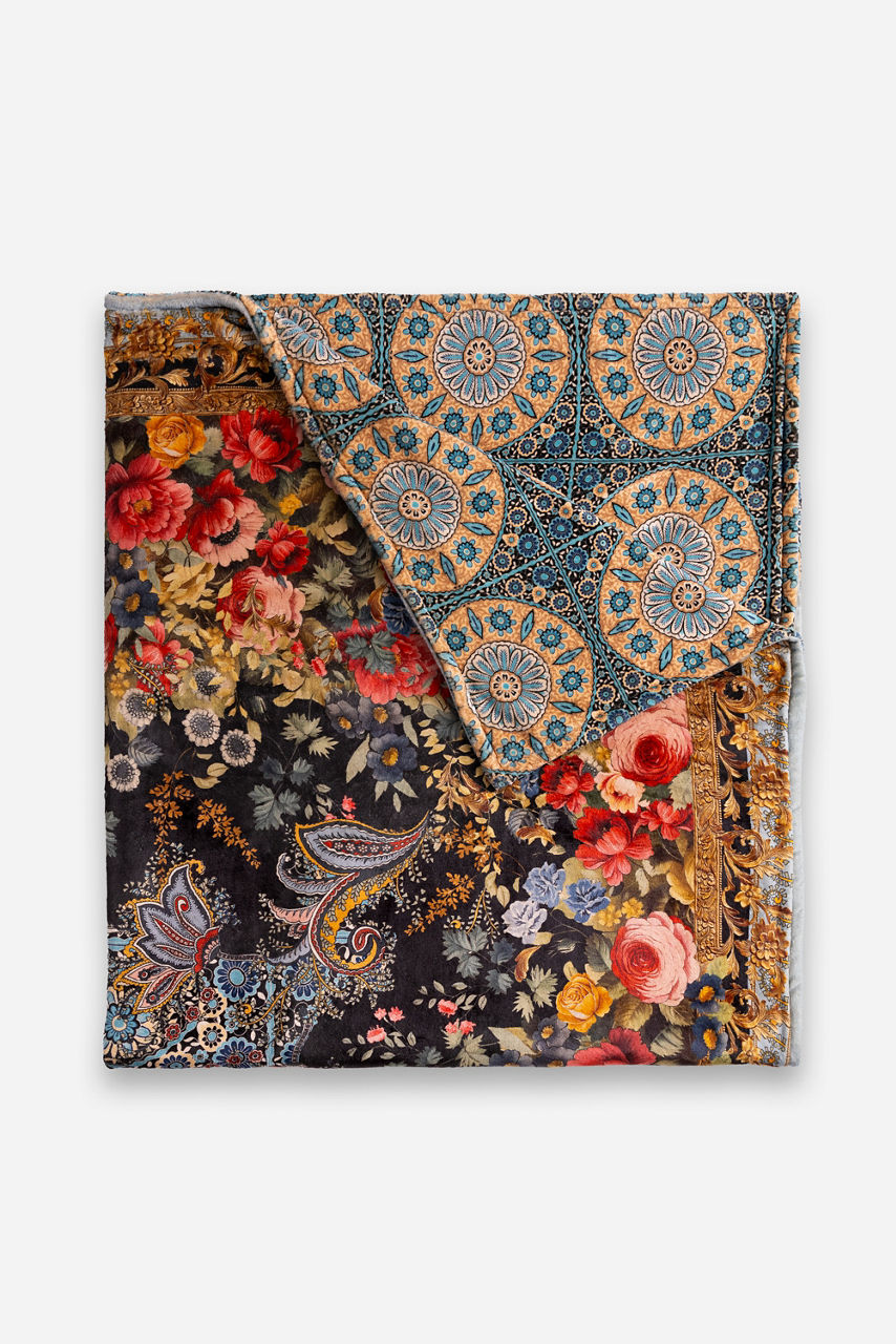 Providing an additional cozy layer wherever you may go, the Laurel Canyon Cozy Blanket is a travel essential. Beautifully embellished, this reversible blanket features a separate bag with a unique tassel tie for easy storage. Pack in your carry-on or your beach tote to stay warm everywhere your journey takes you.