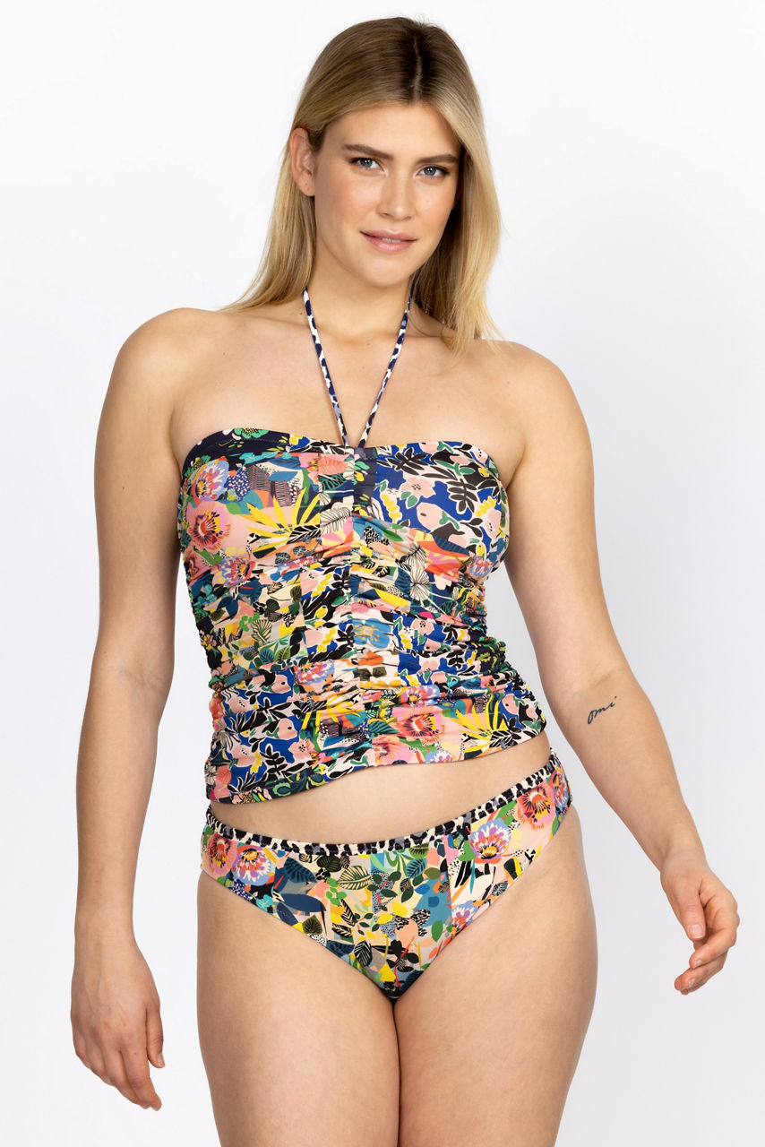 Covered in bursting blooms, the Layla Hipster Bottom are a key staple for those exotic warm-weather escapades. Designed from a quick-drying material with added stretch, these bikini bottoms are enhanced by a leopard print trim at the waist, full coverage, and ruching at the back for a playful finish. Pair with a matching tankini and a cover up for a lively beach-side ensemble.