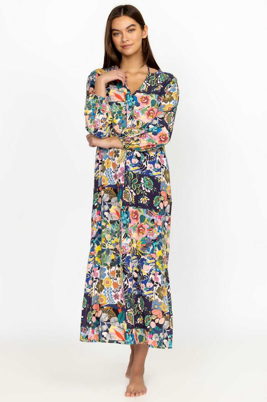 Inject a dose of low-key glamour into your vacation wardrobe with the Puff Sleeve Maxi Cover Up. A breezy and practical silhouette for warmer climes, this cover up falls to a maxi length and is defined by an open neck, long sleeves, and an abundance of flourishing blooms in a vivid color palette. Cut in a slight A-line fit, this cover up is perfect for beach breaks and poolside lounging.