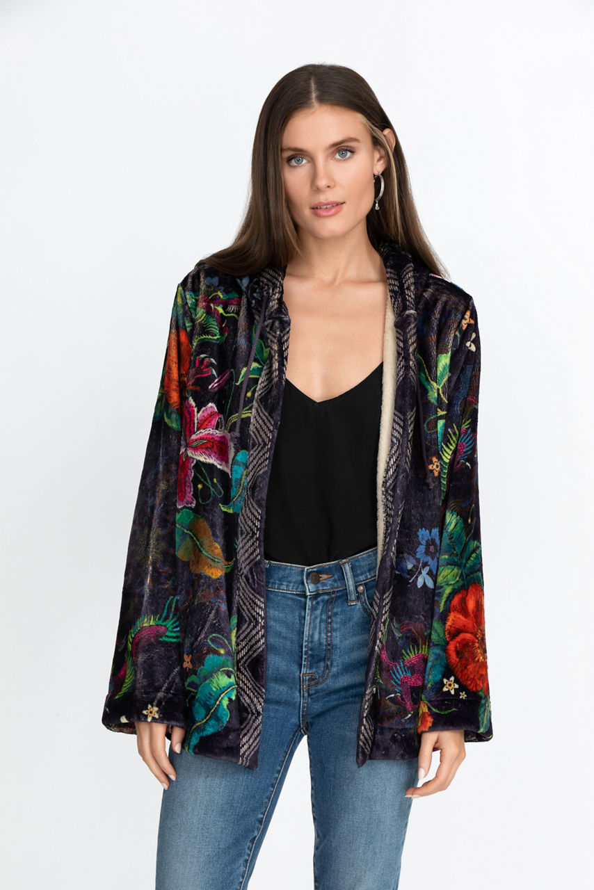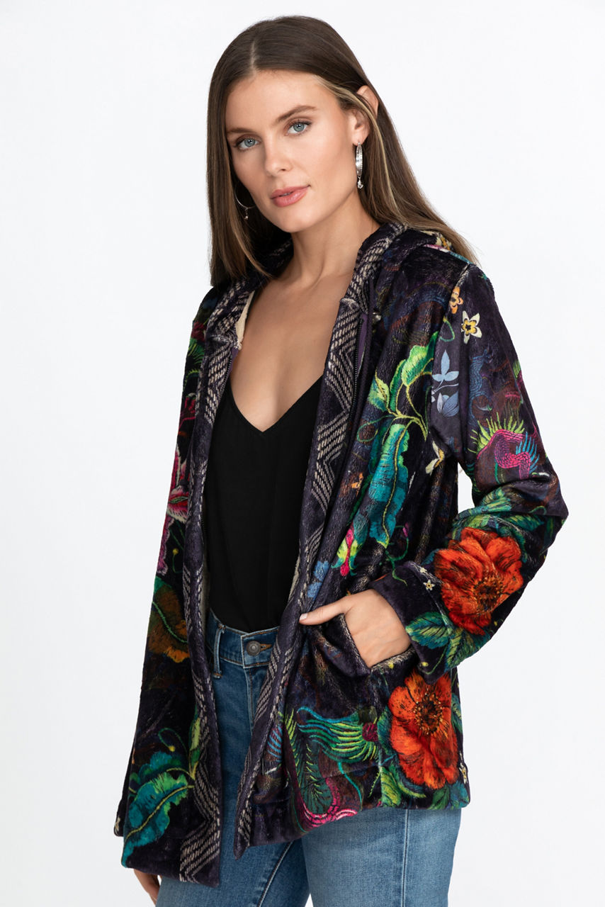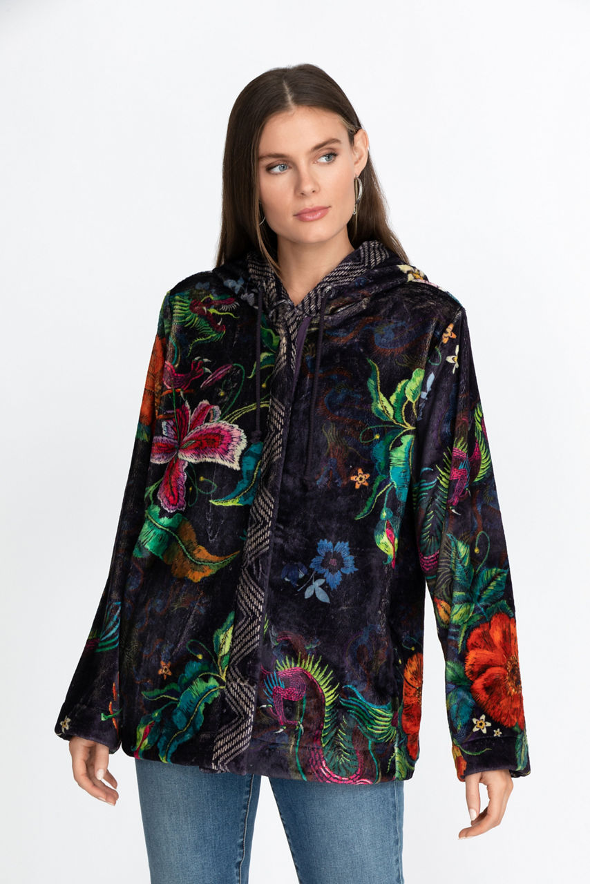 With its bold floral motifs and geometrical details, the Legendary Sherpa Zip Up Hoodie is a smart take on the athleisure classic. The loose cut results in a comfortable garment you' ll reach for when the weather gets cold. Whether you' re the type to lounge by the fireplace or enjoy a brisk walk, this hoodie will quickly become a wardrobe staple. Embroidered leggings or light-wash jeans will complete the look.