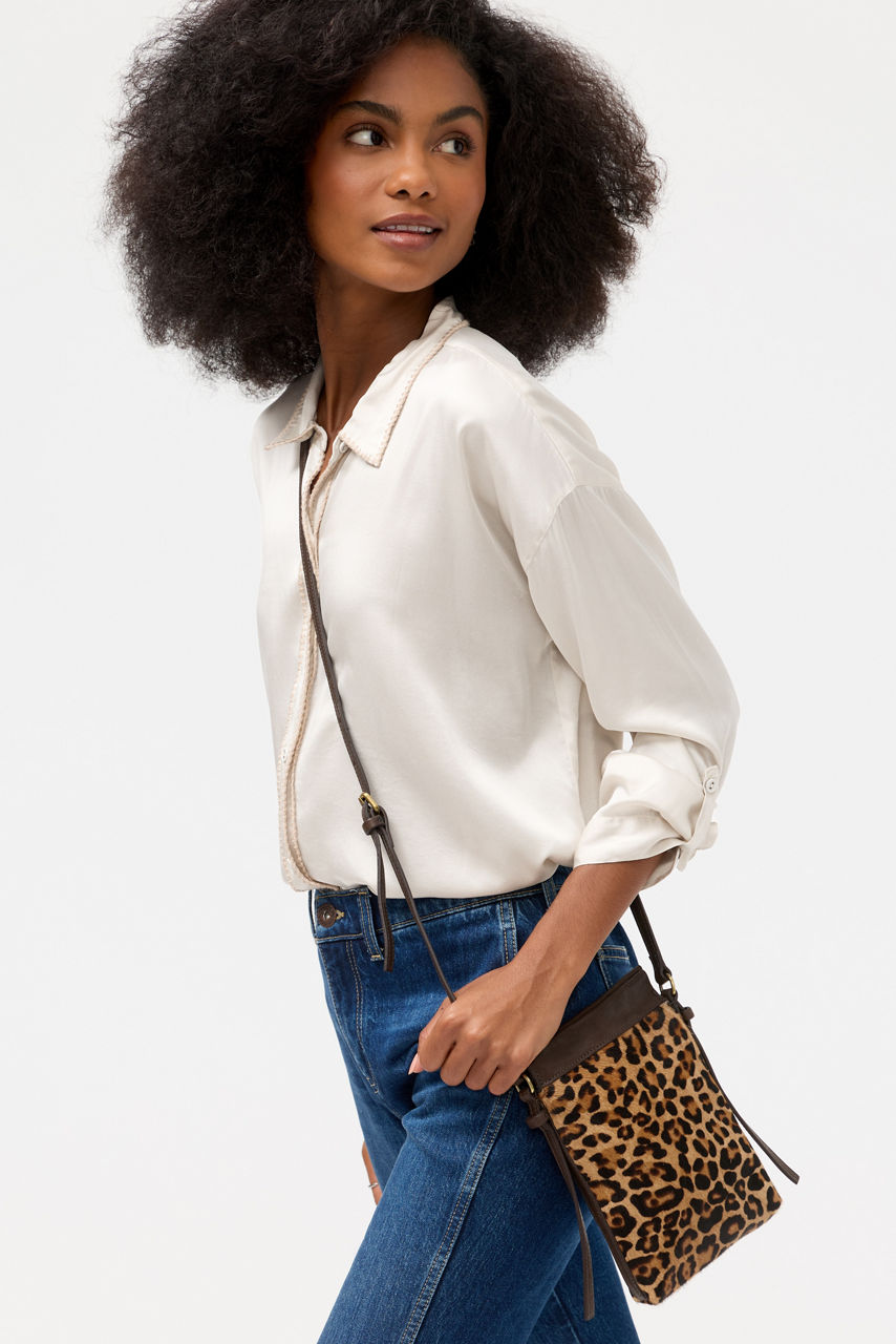 LEOPARD CALF HAIR CINCH CROSSBODY