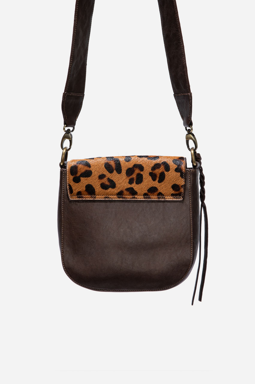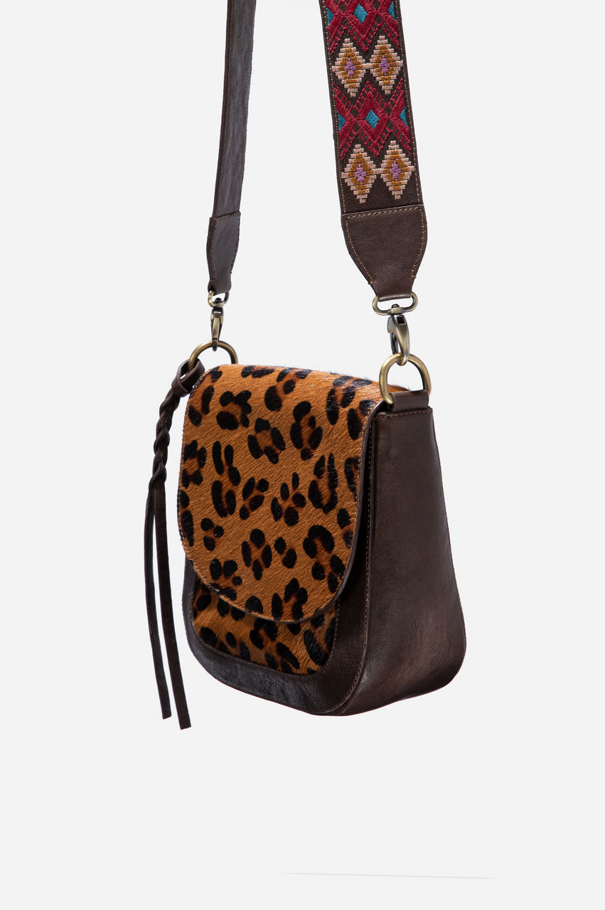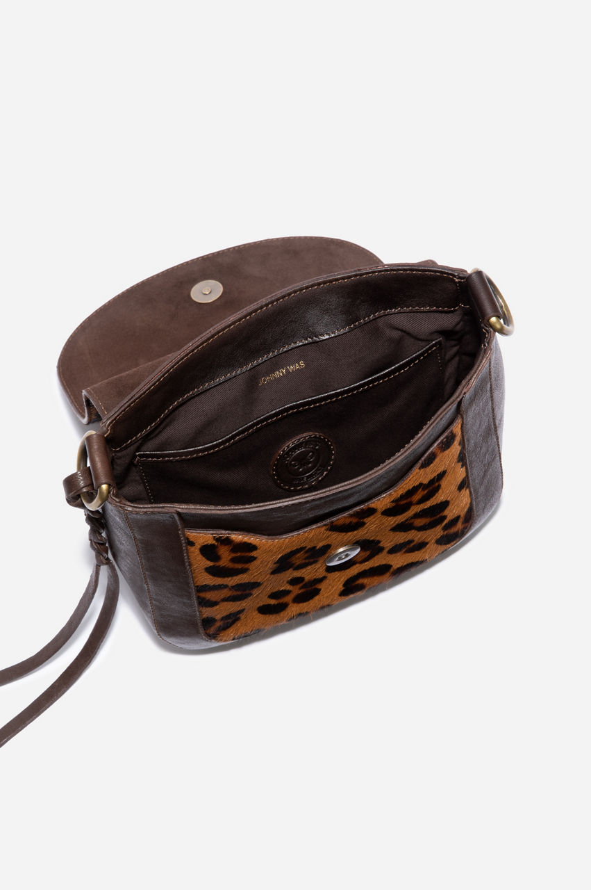 Keep your essentials handy with this stylish crossbody satchel. The leather material and animal-inspired print create a timeless look. This crossbody satchel can take your outfit to the next level if you combine it with a relaxed silhouette. Wear it over a neutral jacket to enhance the leopard print, or use this accessory to create visual interest with layers.
