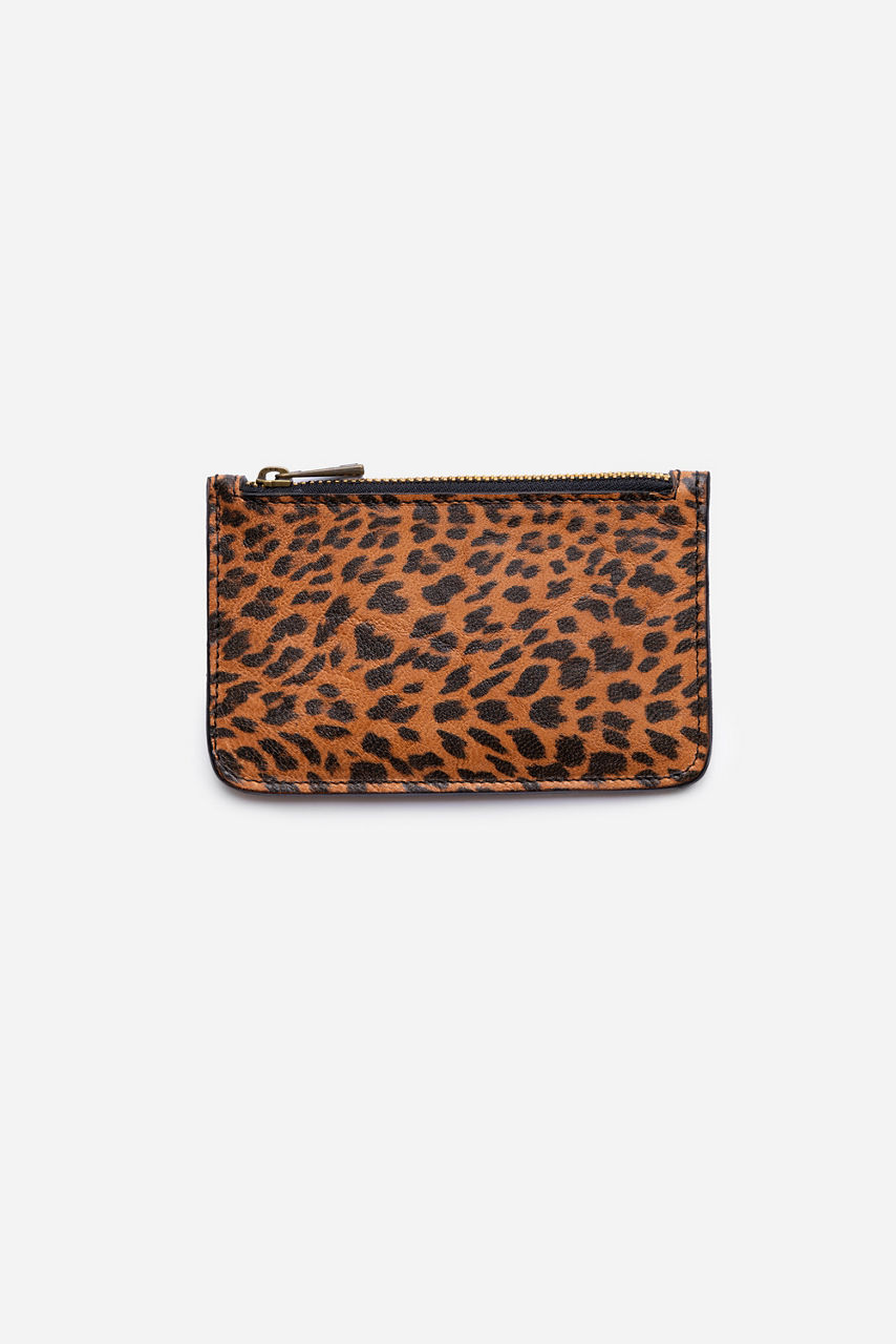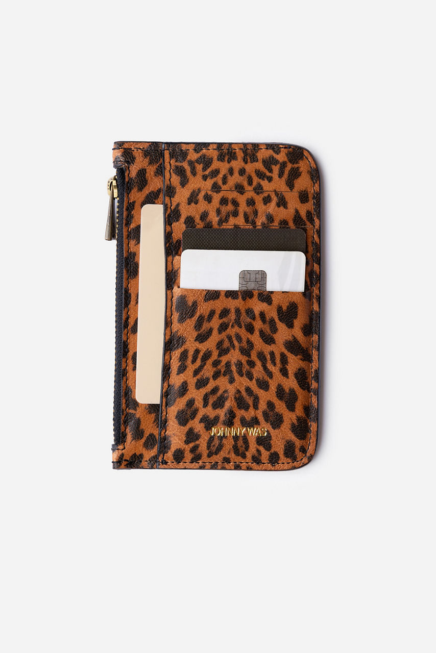LEOPARD ITALIAN LEATHER ZIP CARD HOLDER