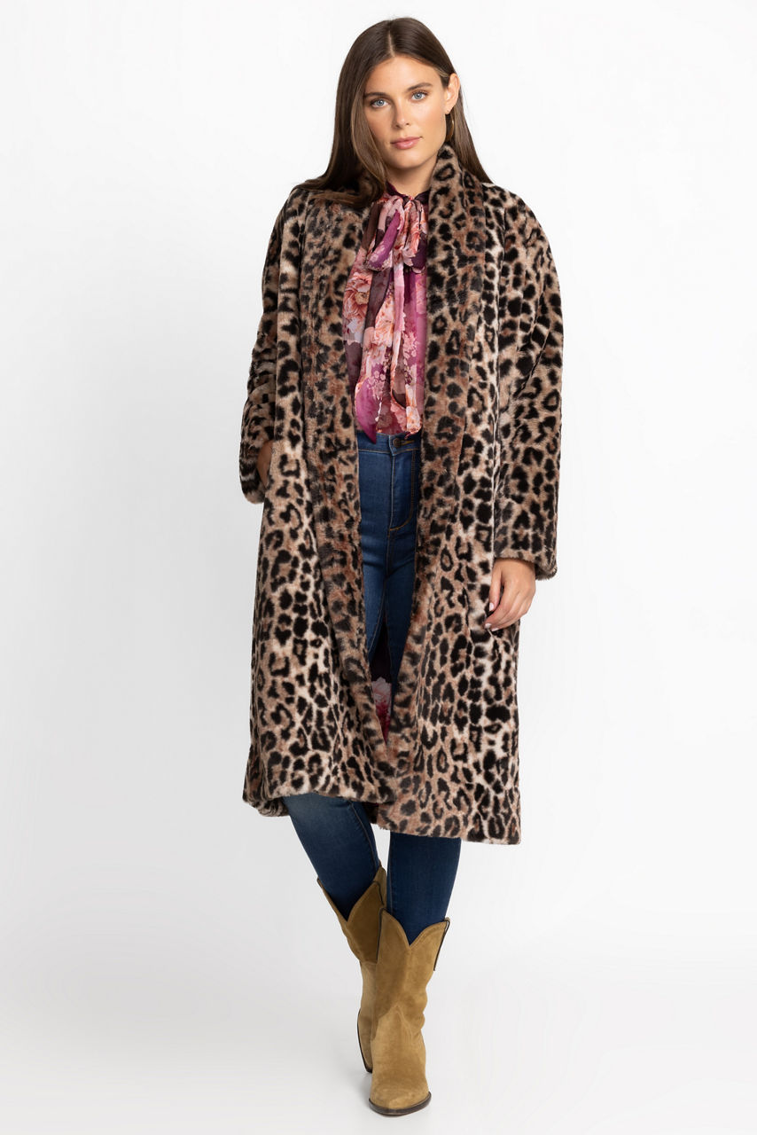A statement-making style, the Leopard Long Faux Fur Jacket takes your new season wardrobe in an exotic direction. Designed from sumptuous faux fur, this jacket features a collar, long sleeves, a printed lining, a bold leopard pattern, and pockets at the sides. Style this jacket with everything from tailored separates to cozy knits and denim.