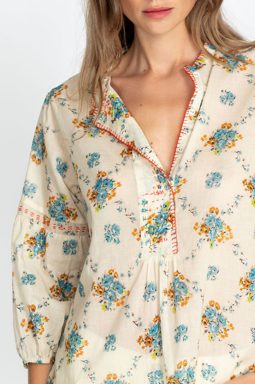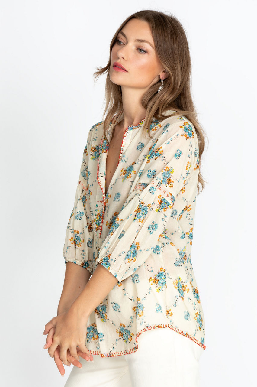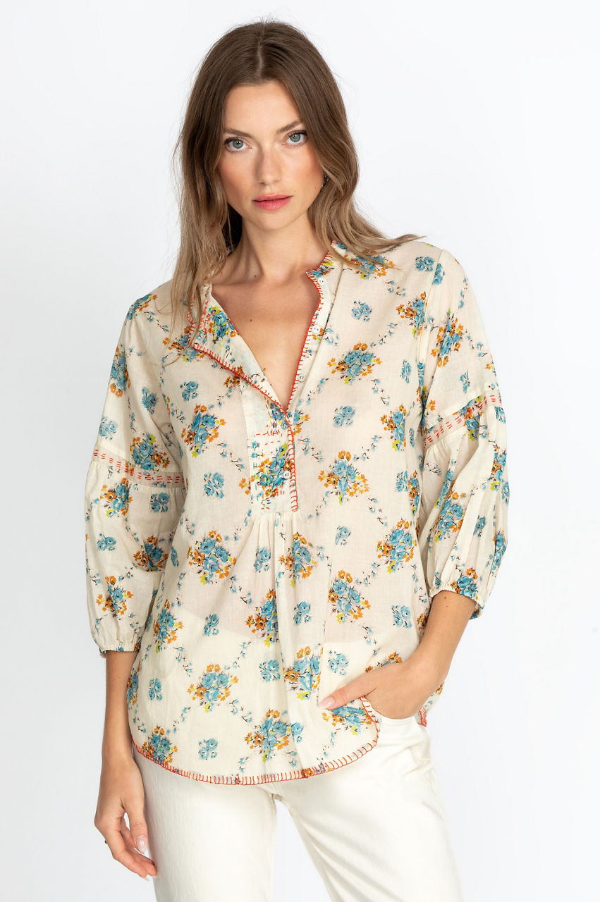 With its cuffed sleeves and thoughtful detailing, our beautifully crafted Leti Blouse is ideal for summer nights on the water. Made of cotton and featuring impressive embroidery, this blouse is the perfect go-to for a cozy-chic look. Dress this gorgeous blouse in casual jeans or shorts and leather sandals for an effortless, go-to look.