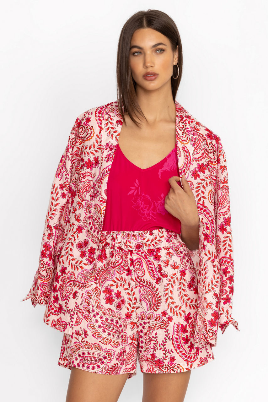 Crafted from 100% breathable linen, the Lillet Shorts are perfect for the warmest days. Featuring an easy elastic waist and functional slip pockets, these vibrant shorts are adorned with a bold pattern rich in color. Pair with a coordinating tank and a white linen button-down shirt for a vacation-worthy look.