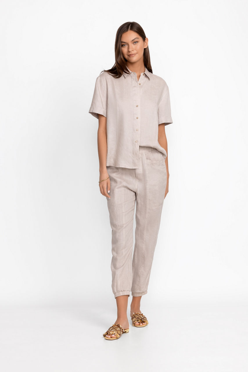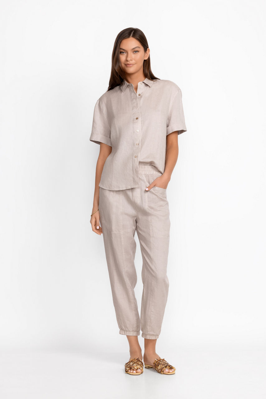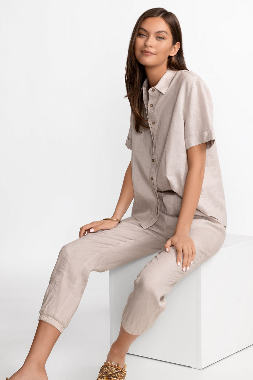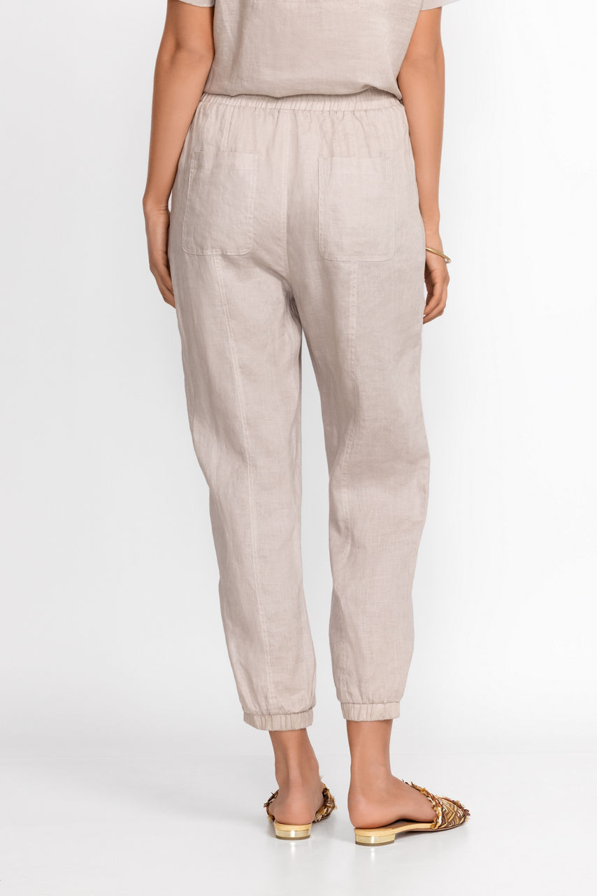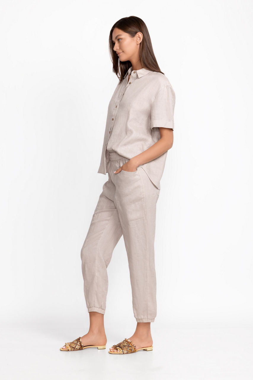 Casual style elevated, the Linen Utility Jogger is a sure to become a warm-weather go-to piece. Featuring large patch pockets and a gratifying relaxed fit, these fashion forward pants are crafted from 100% breathable linen fabric. Pair them with your favorite tee and slip-on sandals for a casual look with a hint of sophistication.