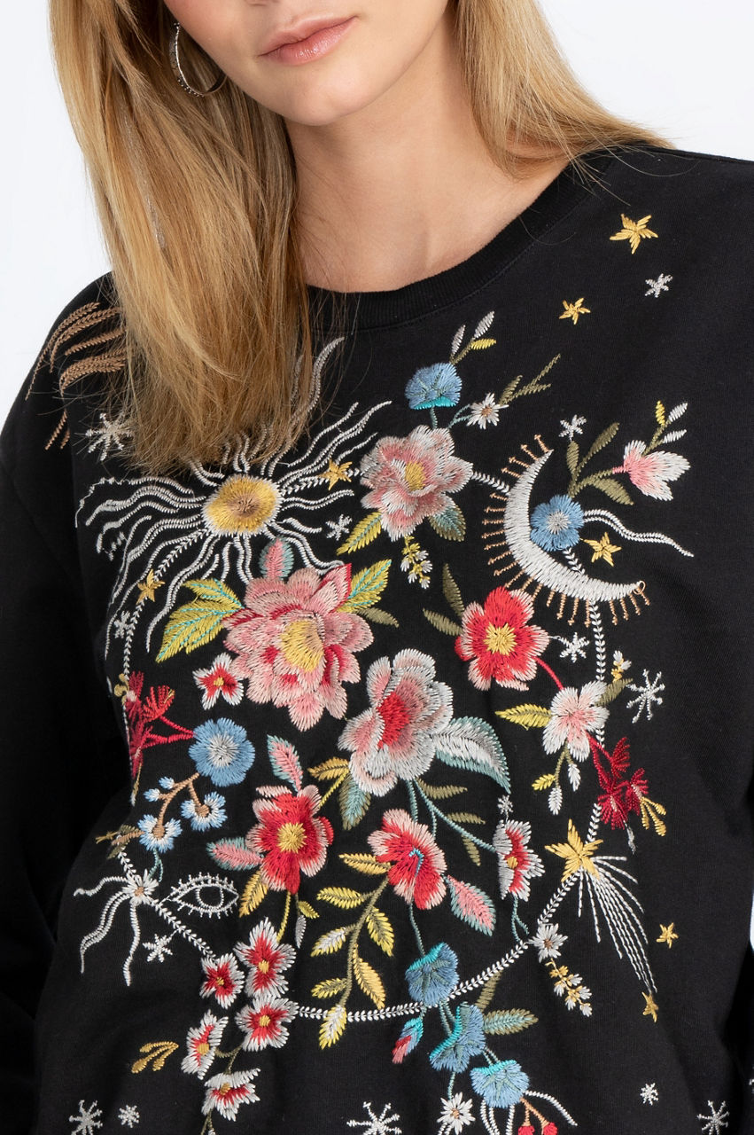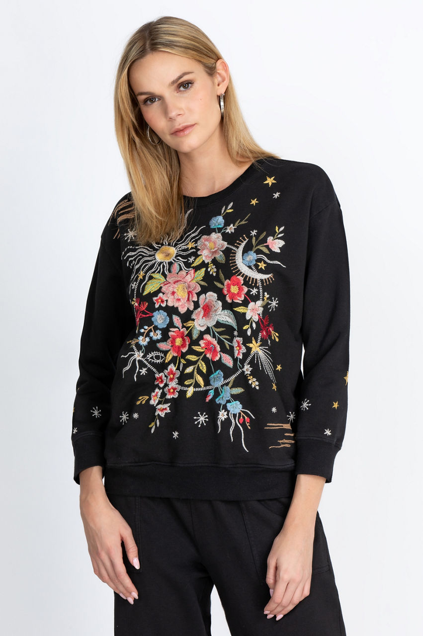 Reimagine the classic sweatshirt look with this sleeve top for a more sophisticated result. The large floral motif will take center stage as you pair this comfortable and stylish sweatshirt with leggings or capri pants. Don t forget to accessorize with a handbag that matches one of the hues used in the floral motif to take your outfit to the next level.