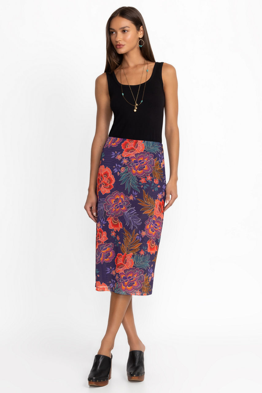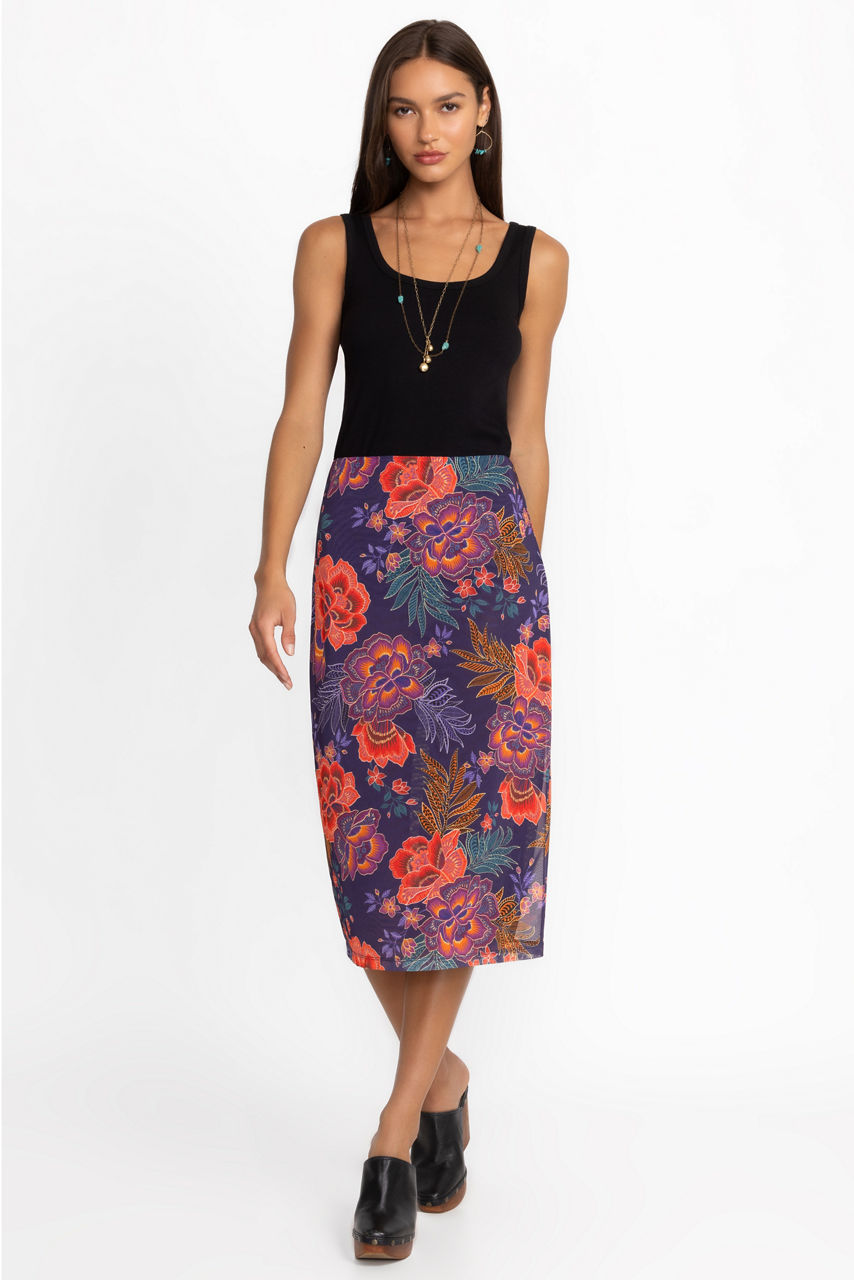 Crafted from a lightweight, breathable fabric with a hint of stretch, the Lizandrea Mesh Midi Skirt is embellished with a bold floral pattern. Featuring an elastic waist and straight cut, this skirt is finished with a full lining. Pair with a classic black blouse and pumps for an elegant evening out.
