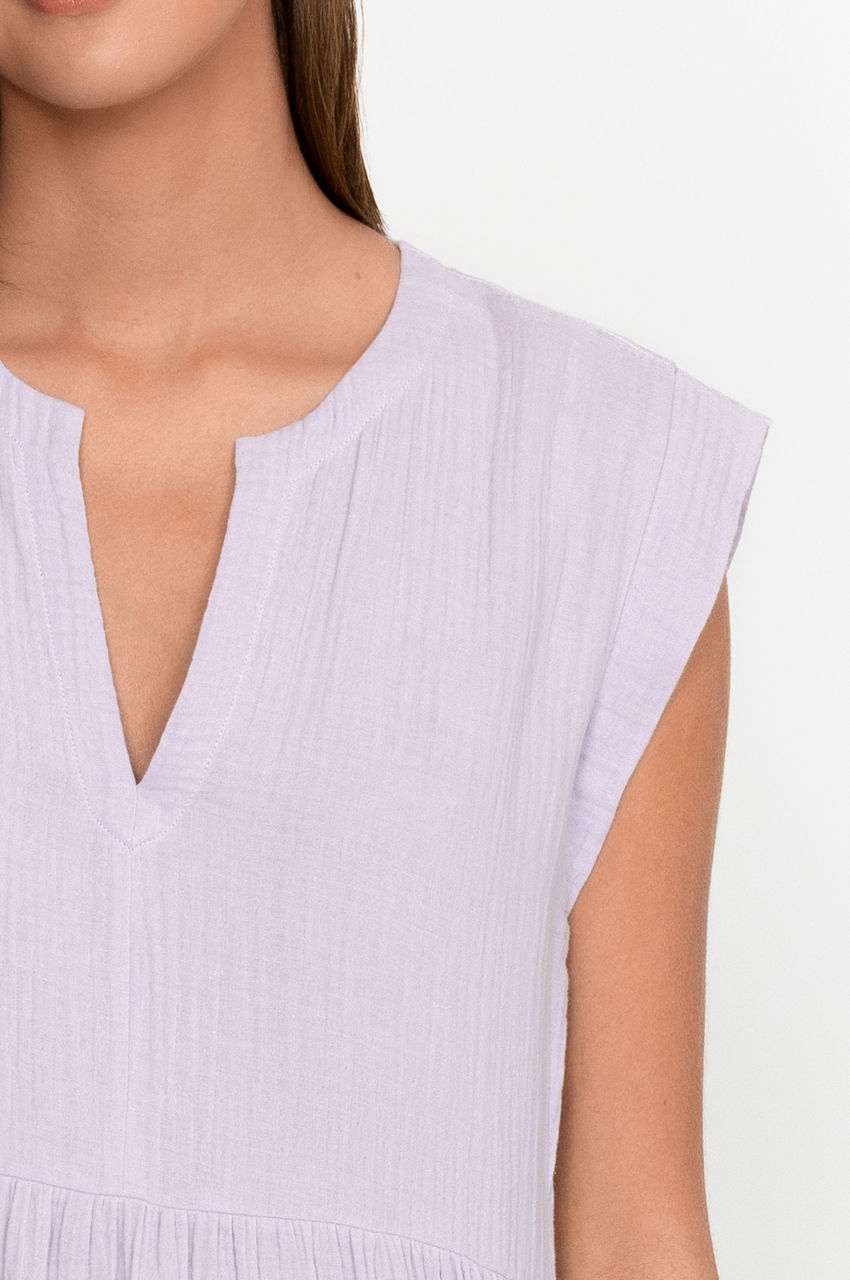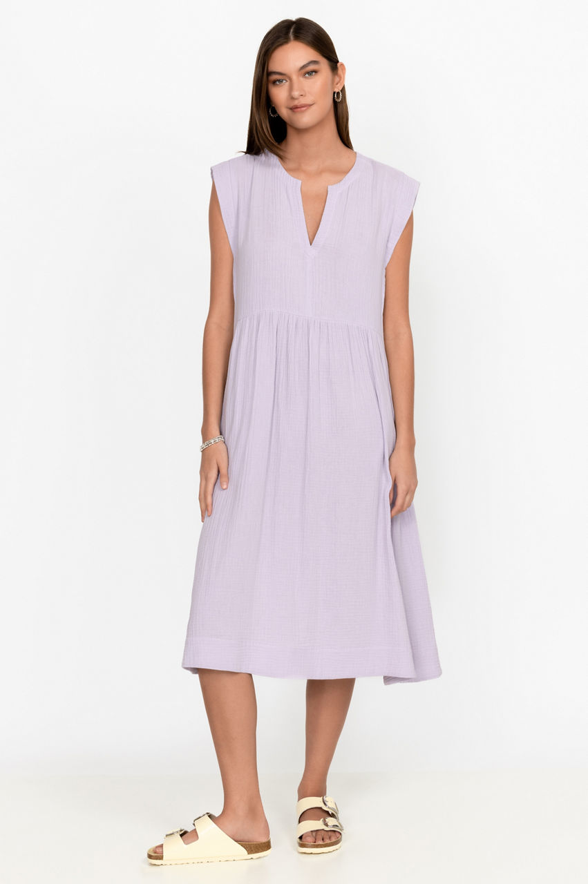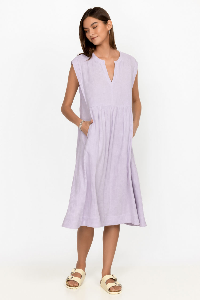 Embodying subtle femininity, the Long Bib Dress is a timeless addition to every wardrobe. This dress falls to a midi length and is crafted from breathable cotton with short sleeves, a round neck, and a flared hem. An easy option for day-to-day dressing, it can be paired with flat sandals for a relaxed warm-weather look.