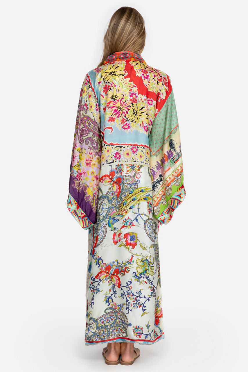 Crafted from luxurious silk, the Long Kimono features intricate prints that blend traditional artistry with modern elegance. Designed to celebrate timeless beauty and sophistication, each piece is a work of art with a limited quantity made in each colorway. This kimono is the perfect addition to any wardrobe for those who appreciate craftsmanship and exclusive design.